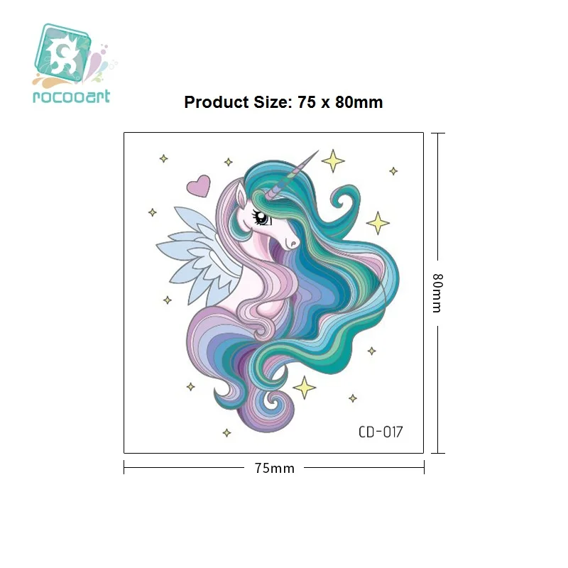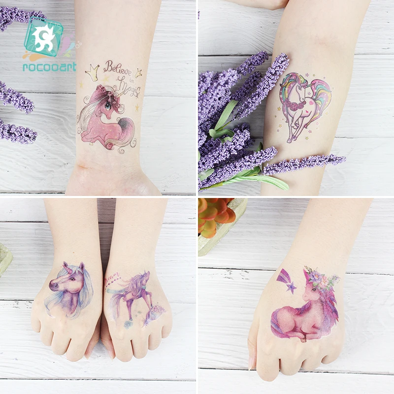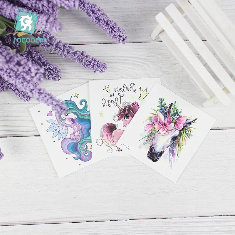 Временная тату-наклейка Rocooart, 1 лист, цветные поддельные тату в виде единорога, флеш-тату, водостойкие, маленькое боди-арт для детей