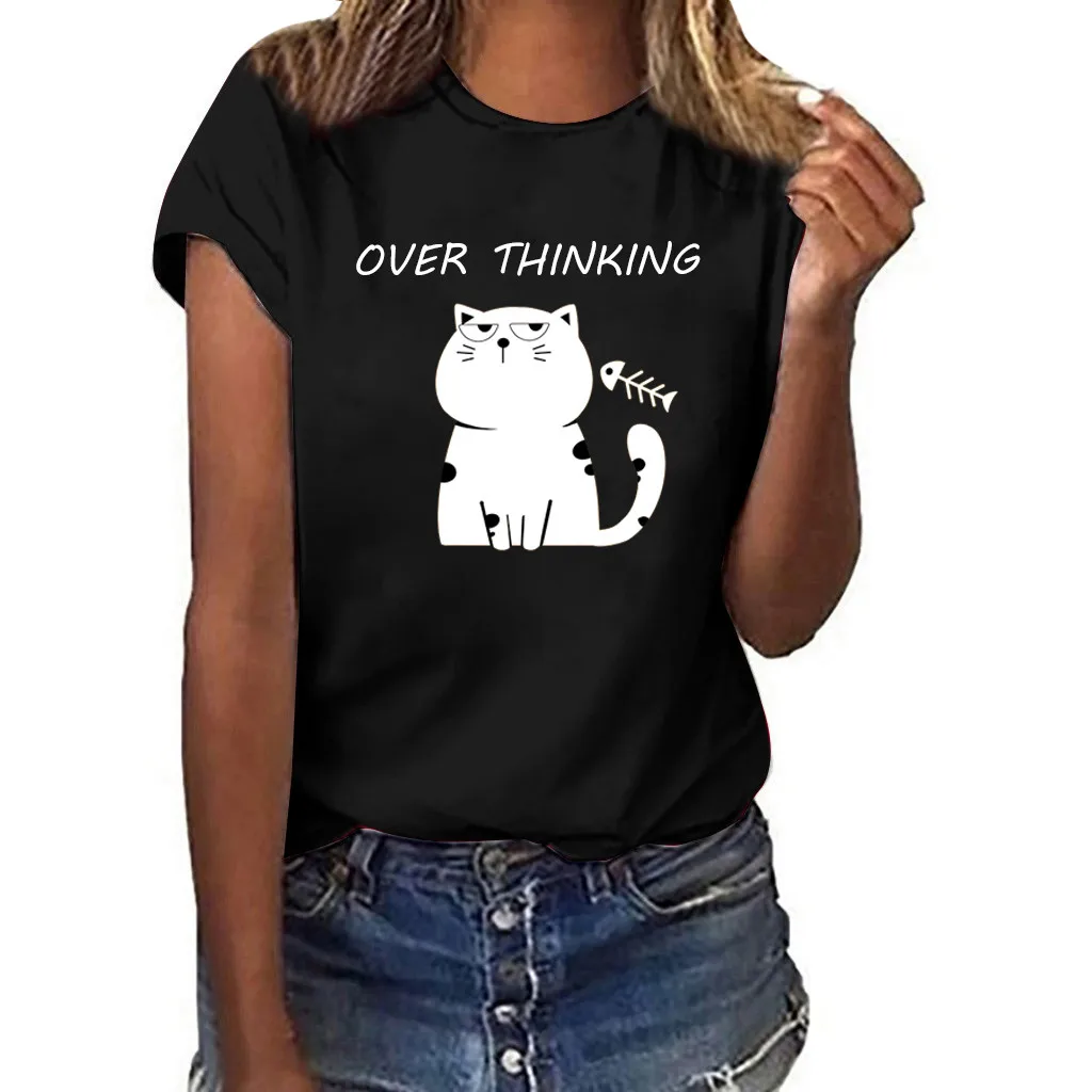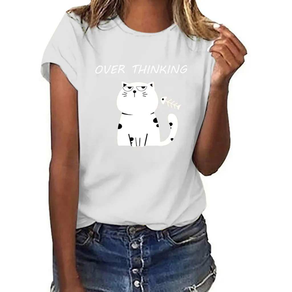 Женская футболка с принтом кошки из мультфильма Харадзюку, модные футболки с графикой, женские забавные тонкие милые футболки для девочек, летние футболки и топы