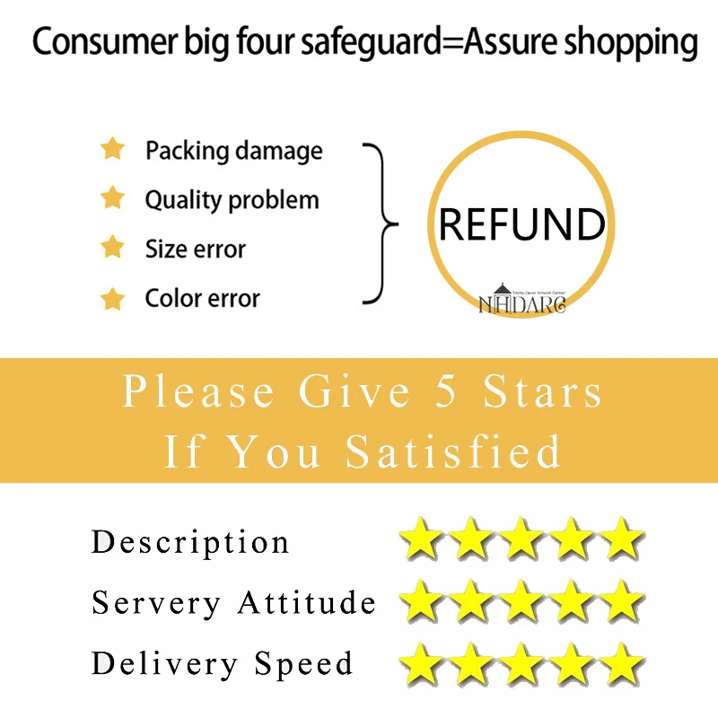 1. Большая защита потребителя = гарантия покупокЕсли есть какие-либо <повреждения упаковки> <Ошибка размера> и т. Д., пожалуйста, свяжитесь с нами для возврата или замены, если вы удовлетворены, ничего не является проблемой2. Я регулярно отправляю вам логистическую информацию, всегда удостоверяюсь, что вы можете узнать ситуацию с товарами3. Отзывы клиентов (отличные отзывы выше 99%) являются подтверждением наших реальных действий.