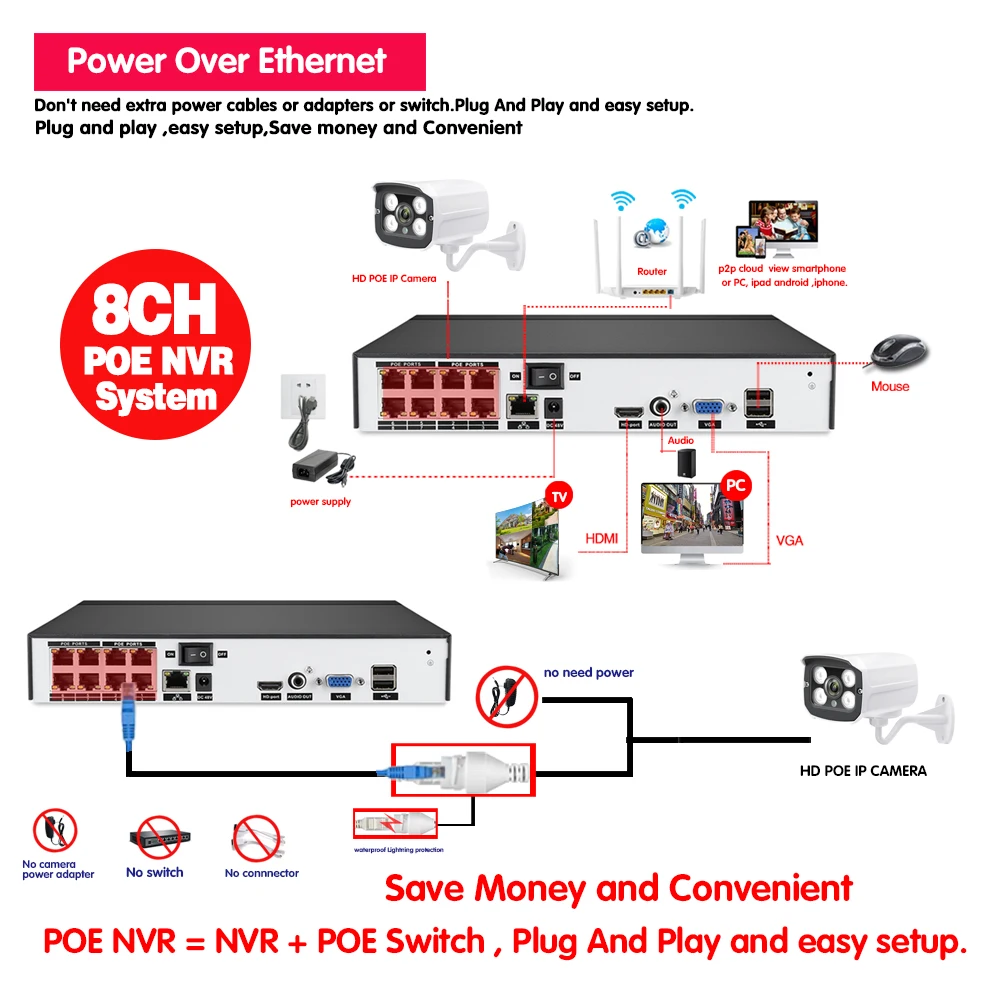 POE NVR FeaturesHDMI&VGA output / Motion detection/email Alert..
