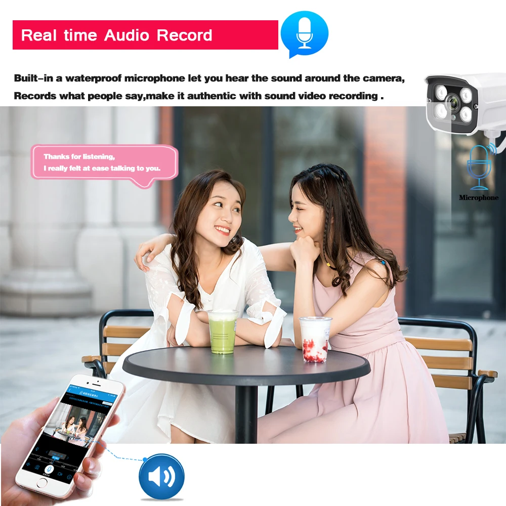 Аудио IP-камера 4K 8MP H.265 AI 8MP 5MP 2MP наружная цилиндрическая...