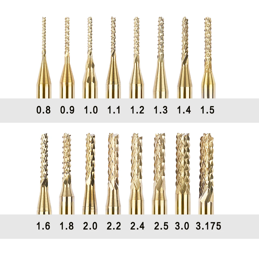 Фрезы с титановым покрытием, 0,8-3,175 мм, 1 шт.