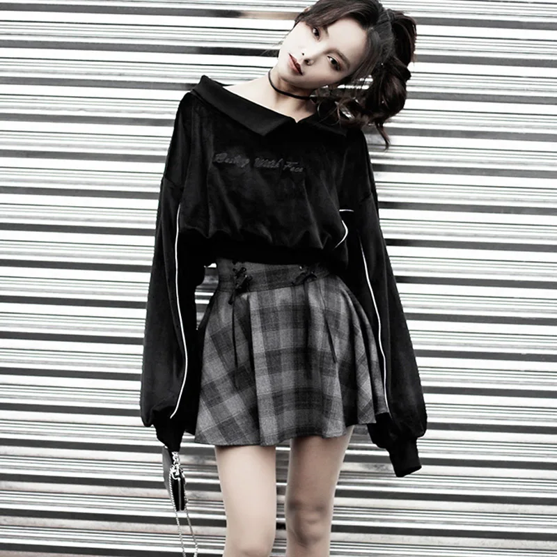 Готика, Харадзюку уличная черного и серого цвета в клетку, женские ...