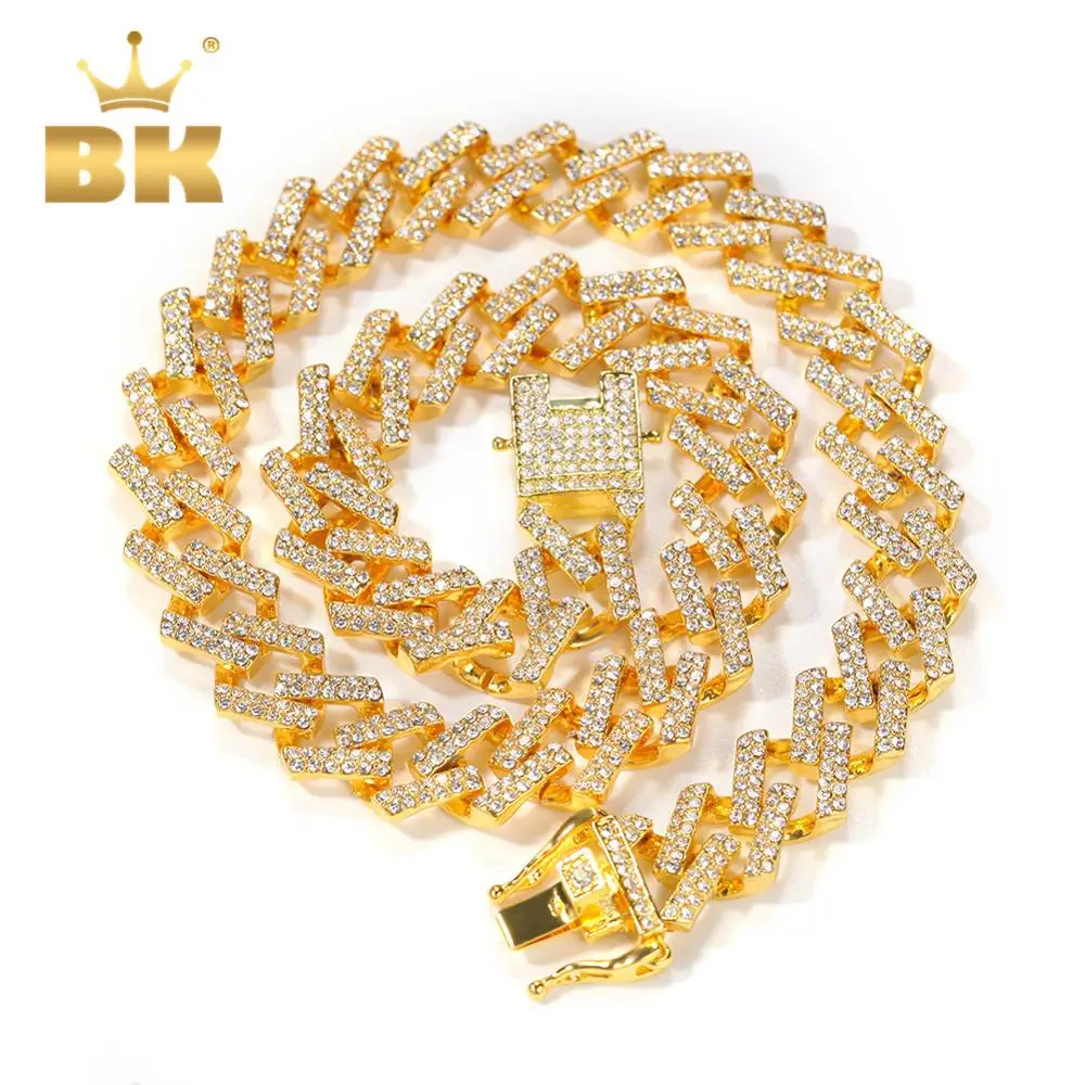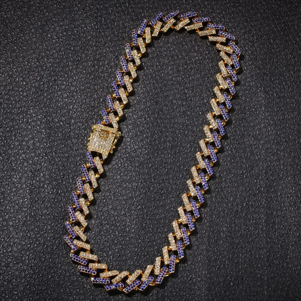 Цепочки с кубинскими звеньями THE BLING KING, модные ожерелья 15 мм, многоцветные, синиечерные стразы, бижутерия в стиле хип-хоп для мужчин