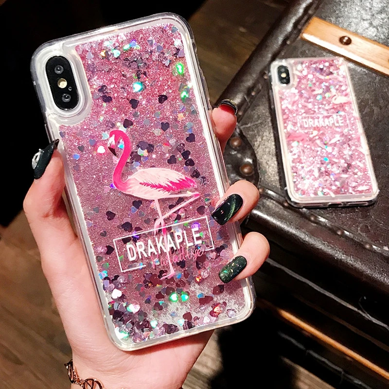 Модный Блестящий чехол розового цвета с динамическими жидкими зыбучими песками Мягкий силиконовый чехол мобильный телефон сумка чехол стильный милый Единорог цветок Фламинго узор прозрачный чехол для телефона задняя крышка Держатель Телефона Чехол протектор