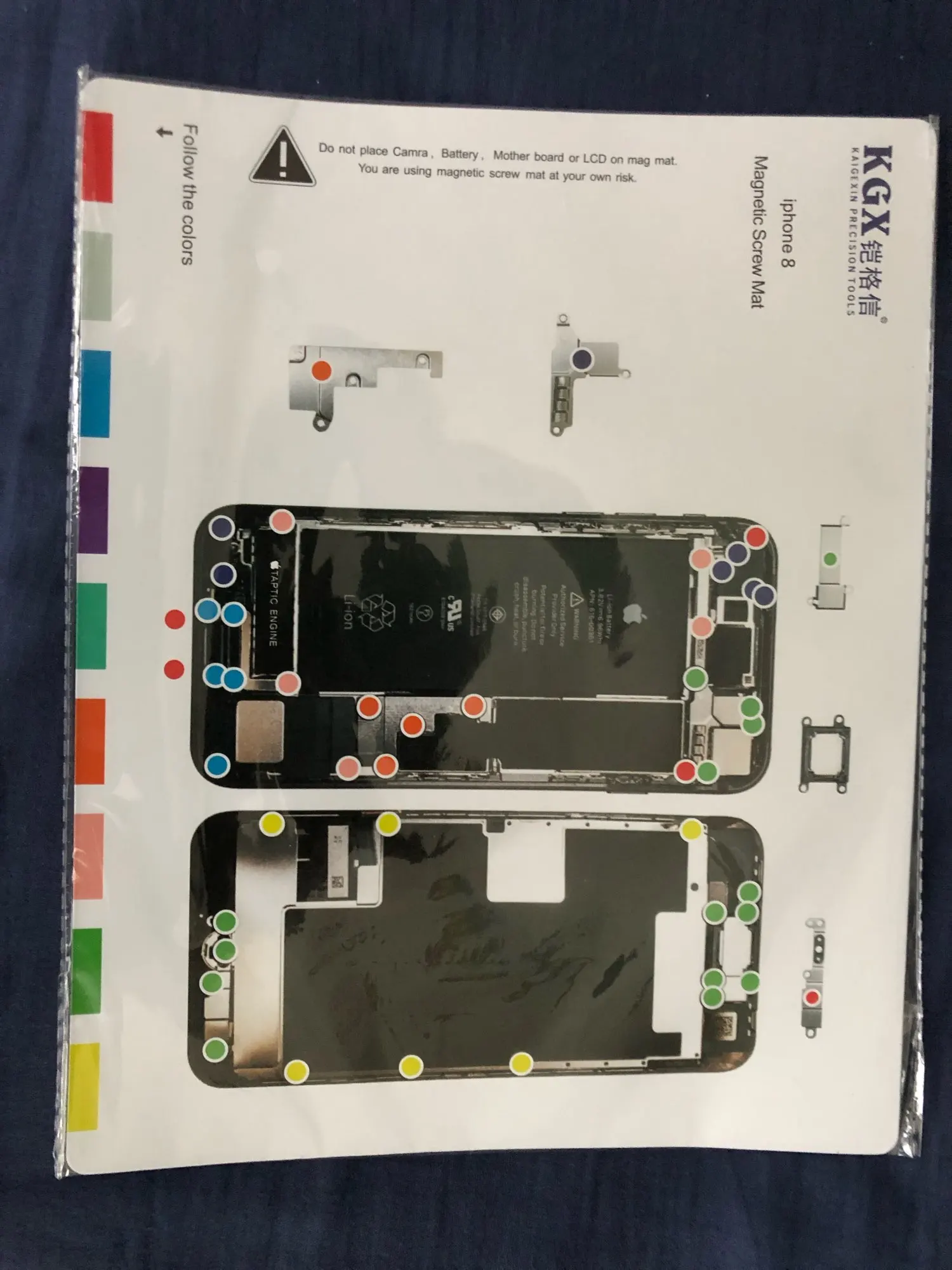 Описание продукта:Магнитный винтовой коврик-это высококачественный инструмент для ремонта iPhone, он предназначен для удержания винтов, компонентов печатной платы телефона или любых небольших металлических запасных частей, поэтому не беспокойтесь о потере любого из них, вы можете сконцентрироваться на своем ремонте. Этот магнитный коврик может упорядочить все винты, чтобы сделать ремонт вашего iPhone более удобным и легким.