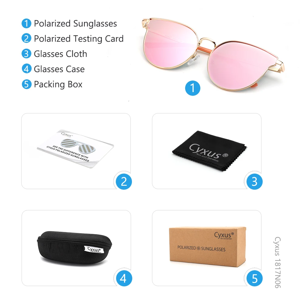Солнцезащитные очки женские Cyxus, кошачий глаз, поляризационные, UV400, в металлической оправе, винтажные, в стиле ретро, 1817