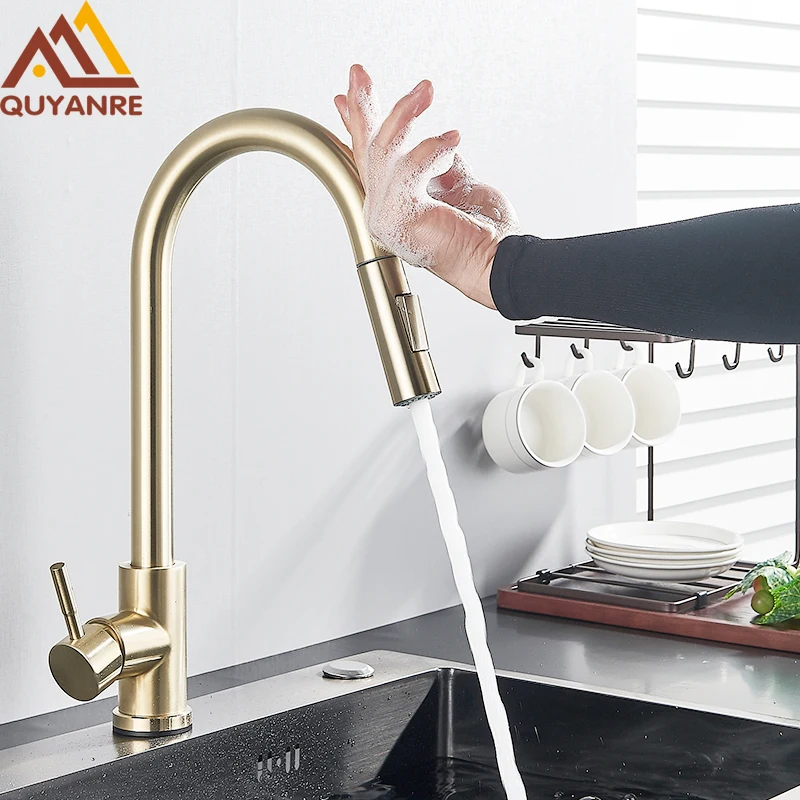 Смеситель для кухни, шампанское, бронза, золото, сенсор, чувствительный, умное сенсорное управление