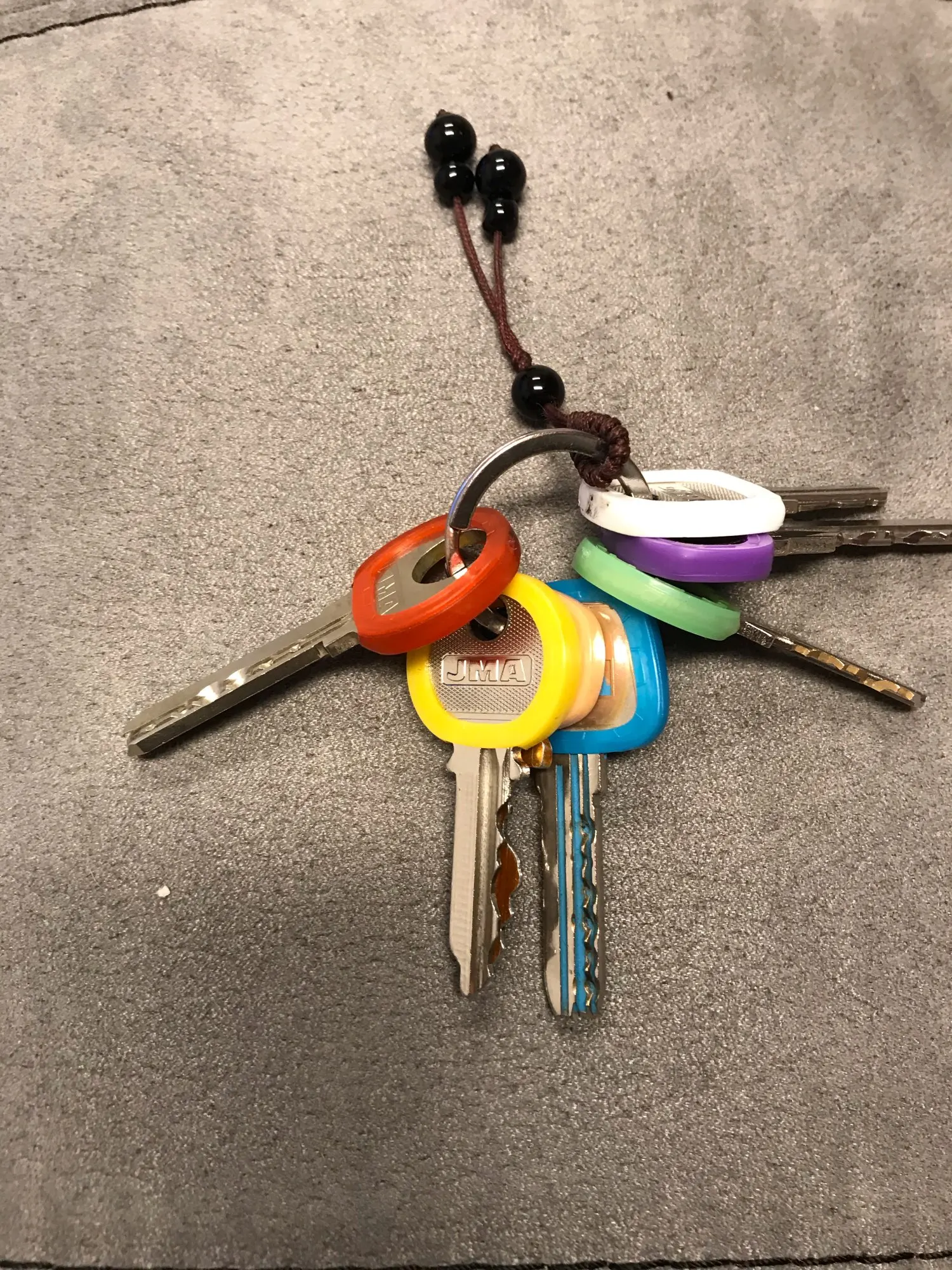 Очень практично быстро различать ключи, которые выглядят одинаково. Цвета красивые и их легко надеть.