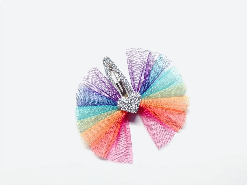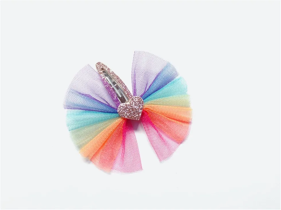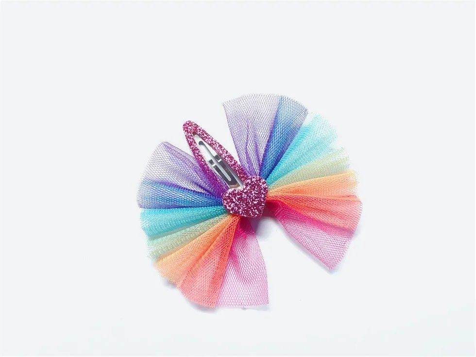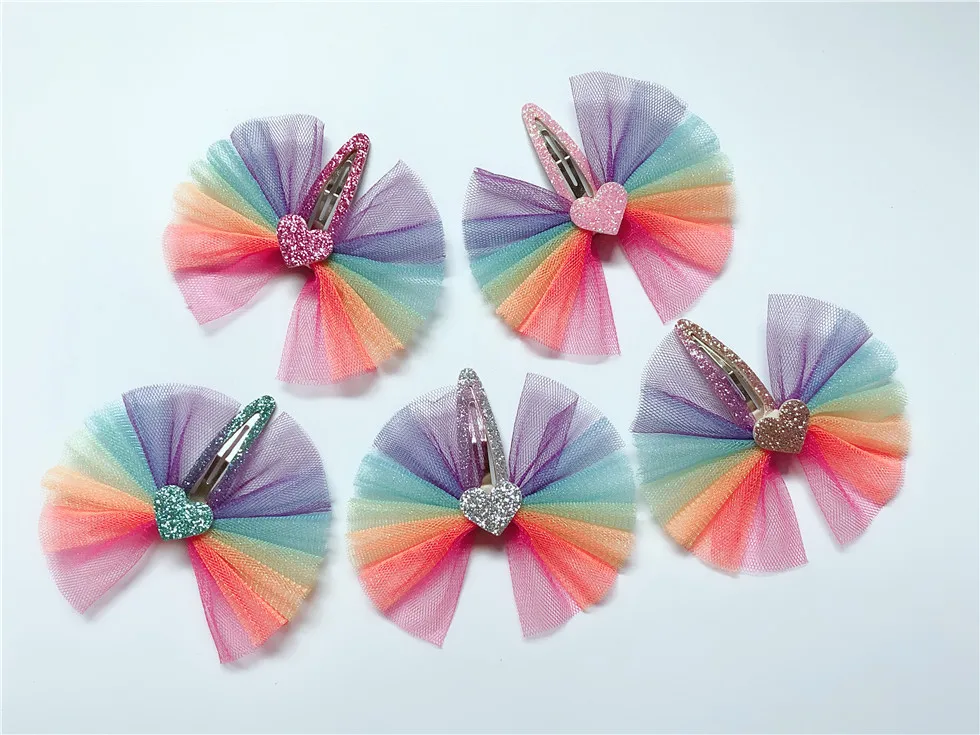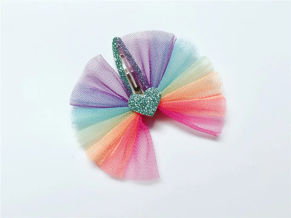 10 шт. ins Изысканные милые радужные пятнистые ленты с бантом и застежками, блестящие заколки с сердечками, модные аксессуары для волос, головной убор принцессы