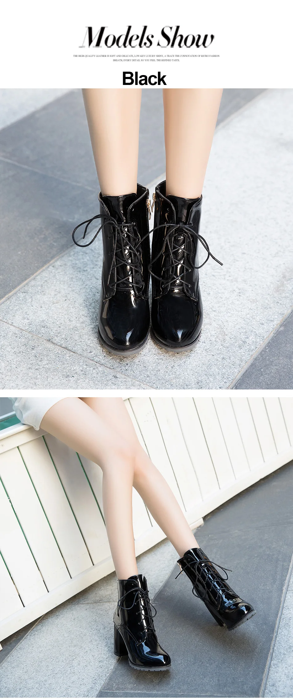 Женские ботильоны из лакированной кожи Gdgydh, черные ботильоны на шнуровке и высоком каблуке, на молнии, большие размеры до 48-го, для весны и осени