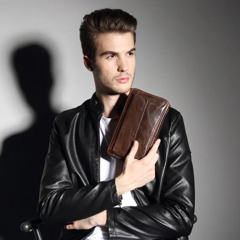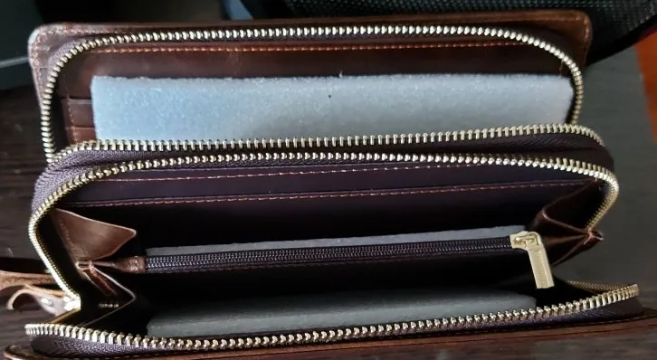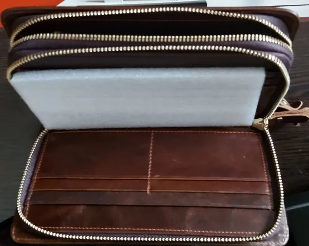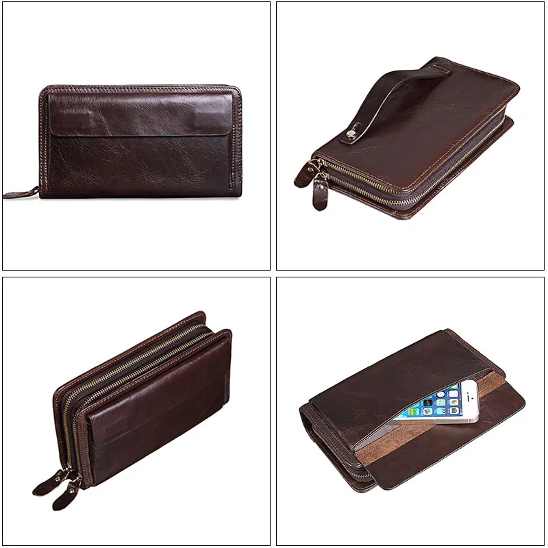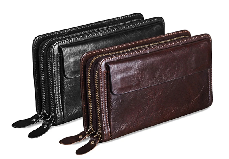 Мужской клатч из воловьей кожи, длинный деловой кошелек с двумя молниями, для телефона