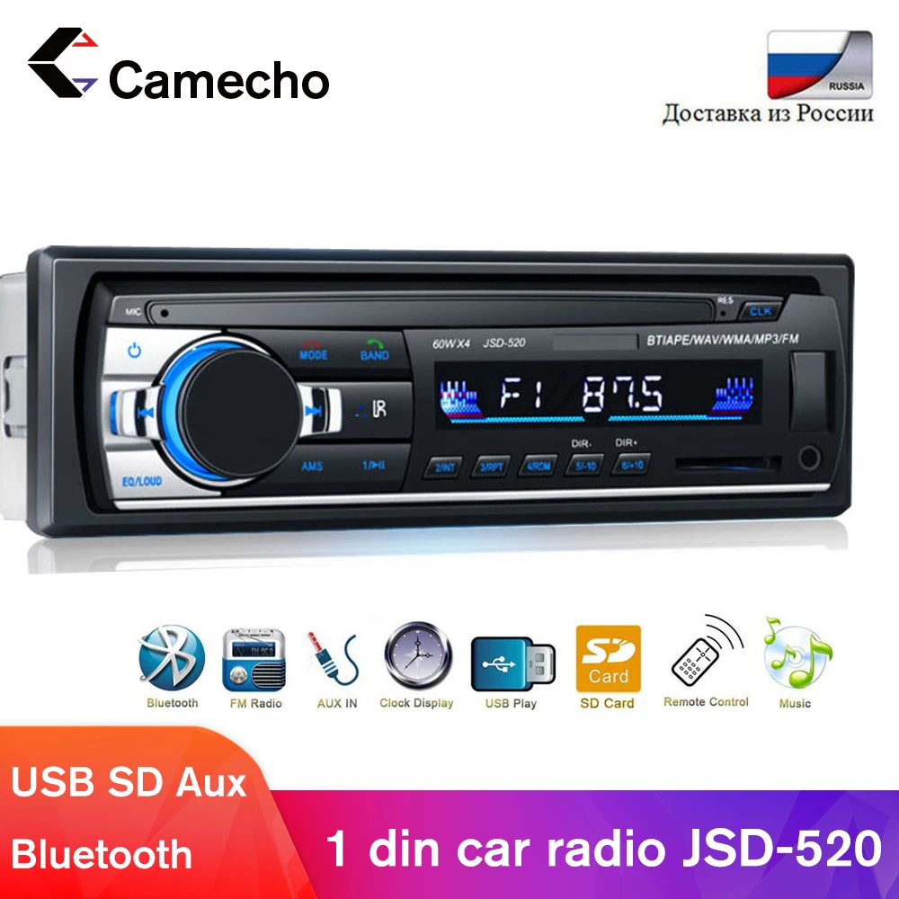 Спецификация Bluetooth: V2.0Поддерживает расширенный профиль распределения аудиоФункция отображения времени выключенияЦифровое высококачественное fm-стерео радиоПредустановка 18 станций (частота: 87,5-108 МГц)Поддержка USB / SD / MMC кард-ридерПоддержка аудио: MP3 / WMA / APE / FLAC / WAV и т. Д.MP3 рандомизированный, 10 трек вверх/вниз воспроизведениеЭлектронный регулятор громкости ВЧ, басы, баланс и фейдерВыбор различных эквалайзеров: Джаз, Рок, Поп, Классика и т. Д.Бесшумное и громкое управлениеL / R RCA аудиовыход гнезда4-канальный выход высокой мощности (4 громкоговорителя)Режимы поддержки: BT / APE / WAV / WMA / MP3 / FMАккумулятор дистанционного управления (входит в комплект): CR2025 3V Характеристики:Fm-радиоДиапазон настройки: 87,5-108,0 МГцЧувствительность: менее 20 дБСтерео разделение: более 25 дБSNR: более 60 дБПитание12 В машина: 11 - 16 В Примечание: Эта машина 12 В, не в соответствии с источником питания 24 ВАудио Сопротивление вихревого тока динамика: 4 ОмЧастотная характеристика: 20 - 20000 ГцПредохранитель красный: 1A желтый: 15AТип: автомобильный mp3-плеер Специальная функция: fm-радио, Bluetooth, беспроводные звонки, mp3-плеер, USB флэш-дискВыходная мощность: 4x60 ВтНапряжение: 12 ВИсточники музыки: sd-карта, 3,5 мм стерео для наушников, мобильный телефон, флеш-накопитель Посылка включает: 1 х JSD - 520 fm-радио1 пульт дистанционного управления1 x проводНабор инструментов для установки-1 шт.1 x Руководство пользователя Часто задаваемые вопросы: (автомобильное радио) В1. Почему автомобильное радио не может включаться? 1> Пожалуйста, проверьте напряжение автомобильного радио: 12 В постоянного тока