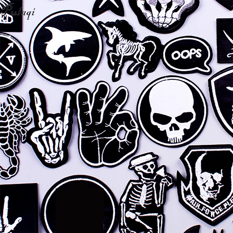 Pulaqi с черепом в стиле панк-рок полоса патчи для одежды Сделай Сам вышитые железные нашивки на одежде хип-хоп значки для стикеров аппликация
