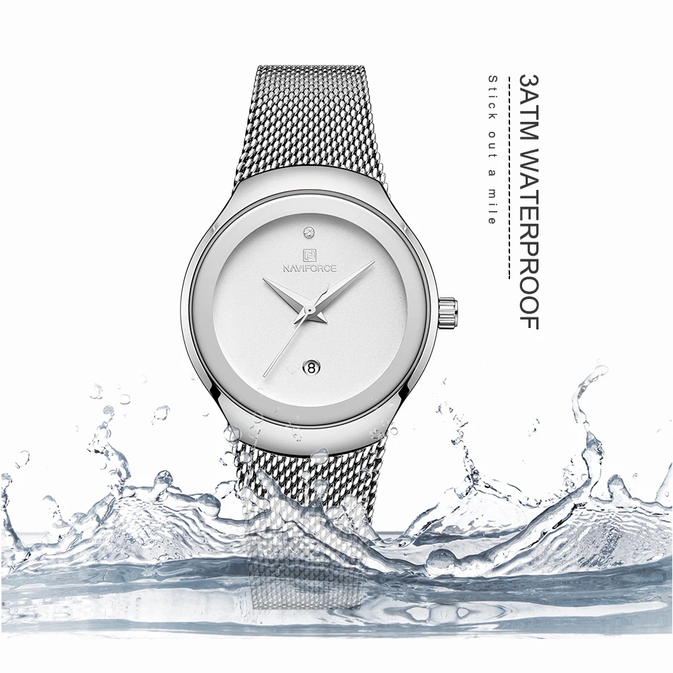 NAVIFORCE Роскошные брендовые часы, женские модные кварцевые часы, женские часы с полностью стальным сетчатым ремешком, простые женские часы, Relogio Feminino
