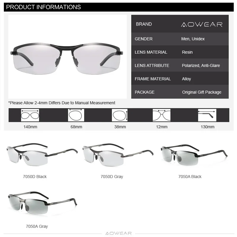 AOWEAR, фотохромные солнцезащитные очки без оправы, мужские поляризованные очки-хамелеоны для вождения днем и ночью, солнцезащитные очки gafas de so