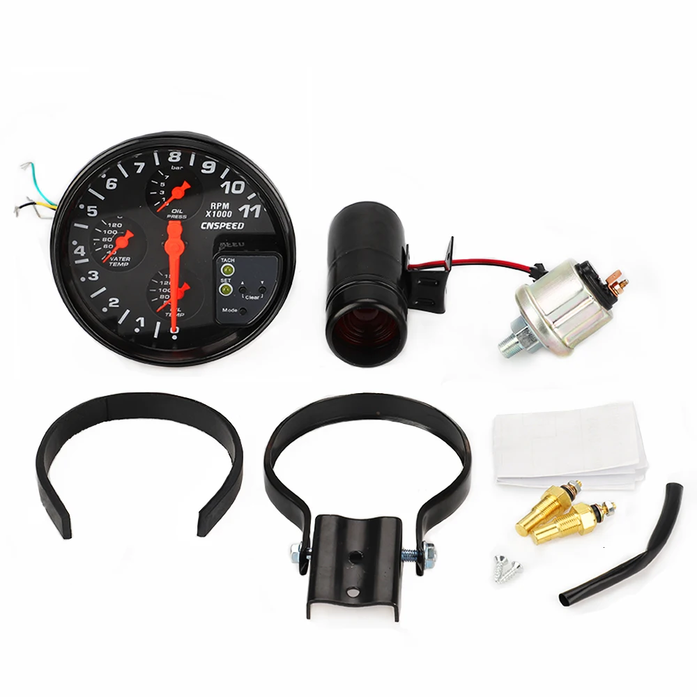 Автомобильный Тахометр 5 дюймов, 4 в 1, измеритель оборотов в минуту, измеритель температуры воды в гоночных автомобилях, датчик температуры масла, Манометр давления масла