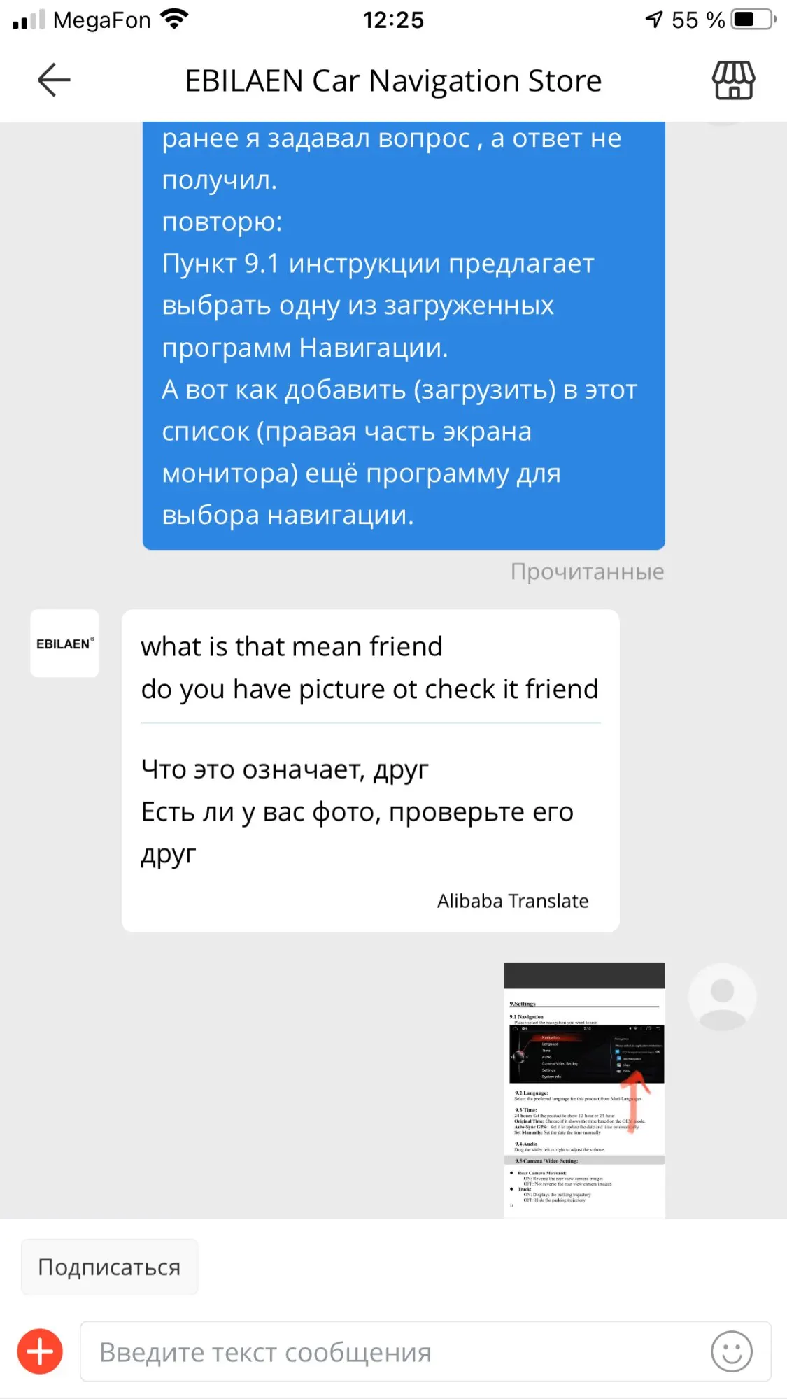 Приехал экран за две недели с небольшим. Качество- на отлично. (За экран -5!, за общение с продавцом -3!) Работает всё на штатной проводке. Так что половина, положенных в пакет дополнительных средств (микрофон, динамик, камера-отдельная «песня») не понадобятся. А вот провод в aux протянуть придётся. Продавец отправил товар в последний день (на пятый день) истечения срока отправки. Отвечал до заключения договора полноценно, как только деньги списались - ответы стали на «отъ..бись». Фото «экрана» цеплять не стану (их много), а вот переписки - подвешу). Дальше, задавая вопросы про установку сторонних приложений и запуск их через пункт меню (здесь про навигацию), ответы были общими, но не на суть вопроса. Прислал новую версию прошивки и всё! Инструкции в комплекте нет (потом скинул на почту), а по правилам это должно обязательно лежать в коробке в любом виде, хоть в электронном.