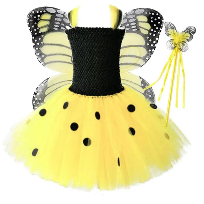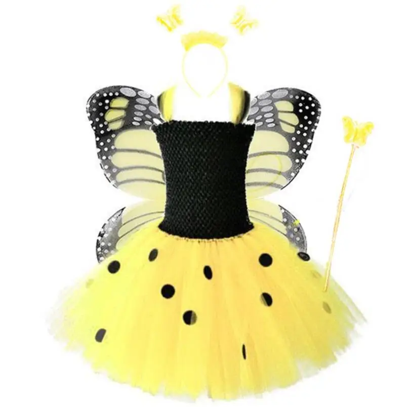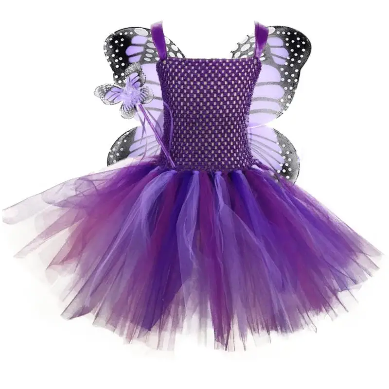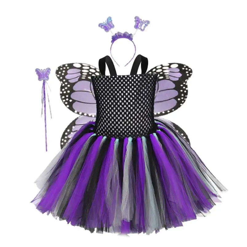 Платье-пачка для девочек, фатиновое, с крыльями-бабочками, на Хэллоуин, 2021, Dresses2-10Y
