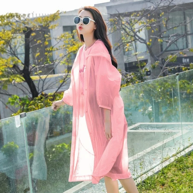 Соответствует фото. Тонкий, лёгкий, тканевый дождевик на маленьких пуговках. Хотела носить как летнюю накидушку, но пока не уверена. Скорее нет
