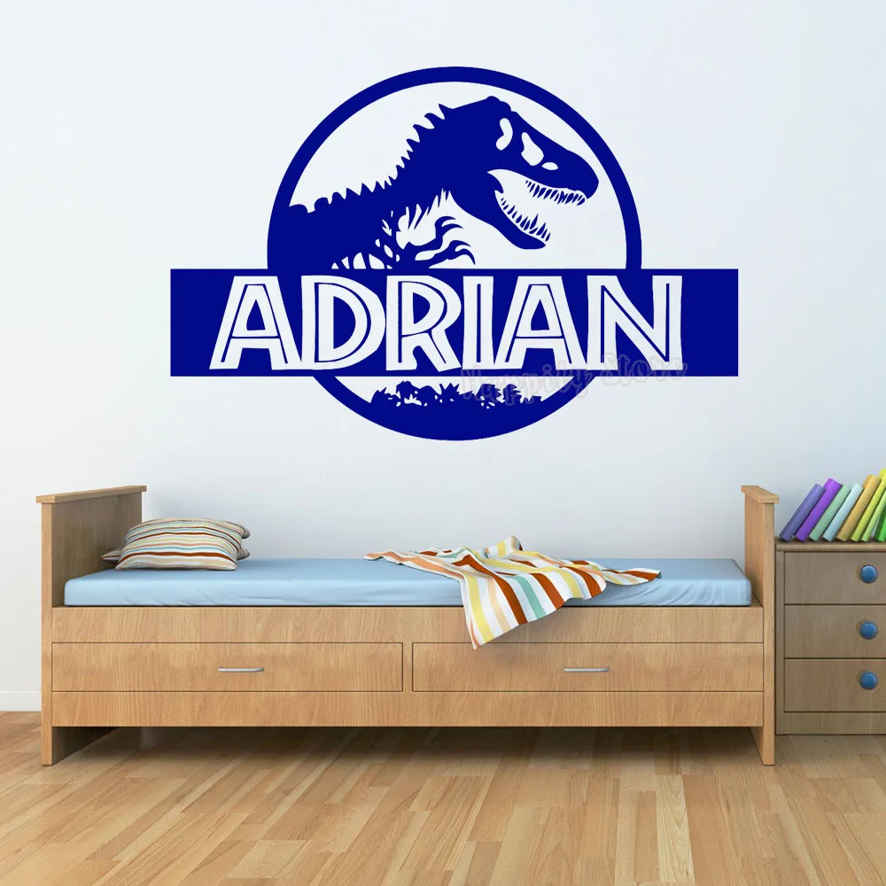 Персонализированная Наклейка на стену парка Юрского периода, Виниловая наклейка с именем на заказ для спальни, динозавра T-Rex, декор для детской комнаты G577