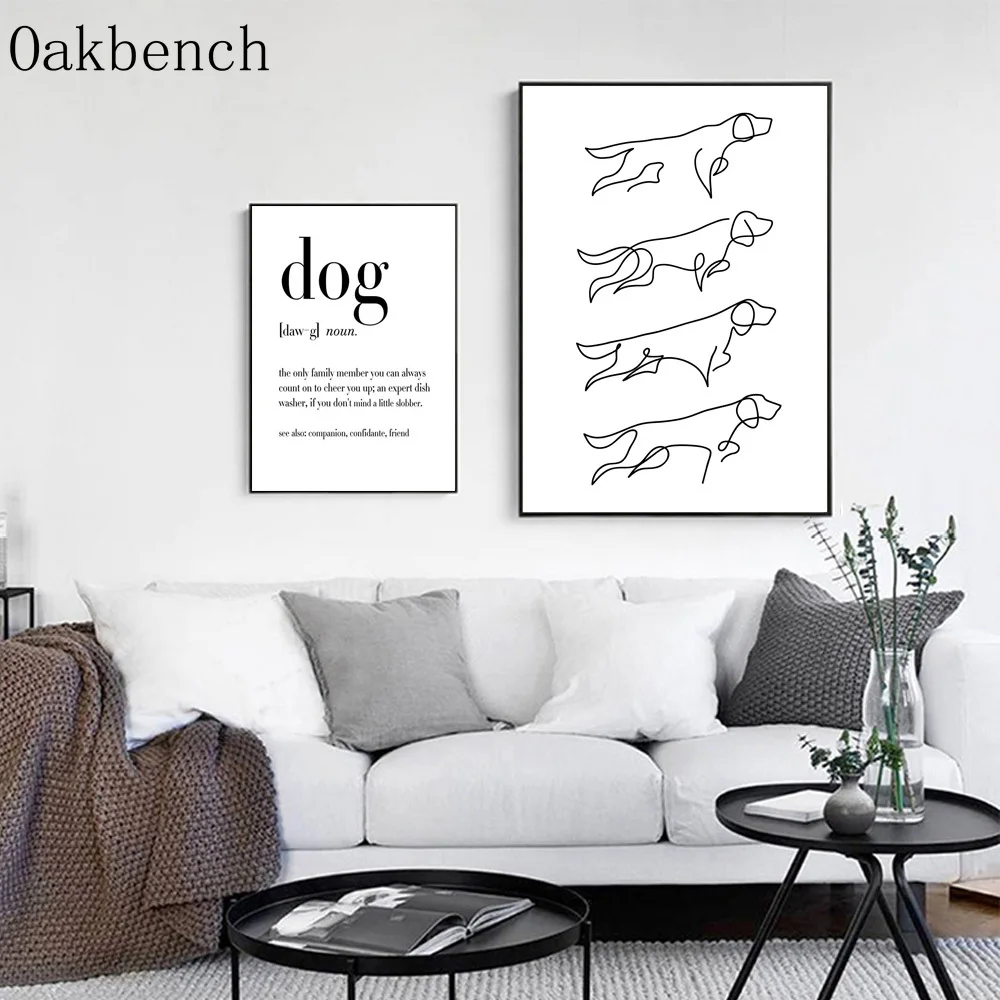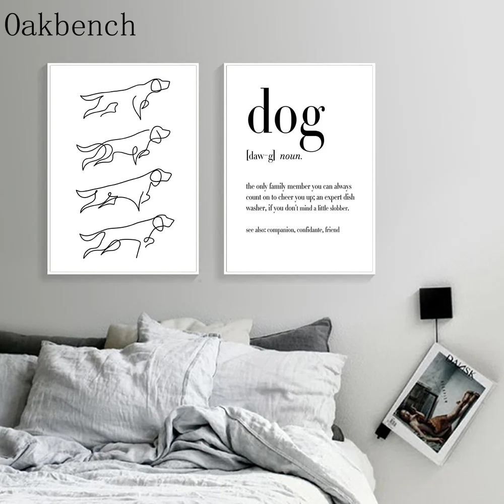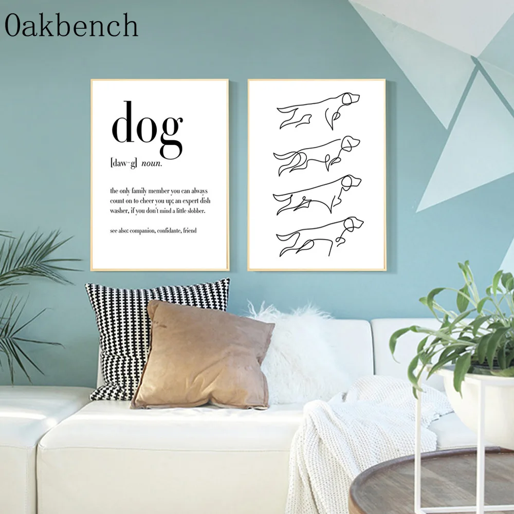 Картина на холсте с собакой, минималистичный постер, картины с цитатами, современное настенное искусство, рисунок с собакой, рисунок на холсте, картина на стену в гостиной без рамки