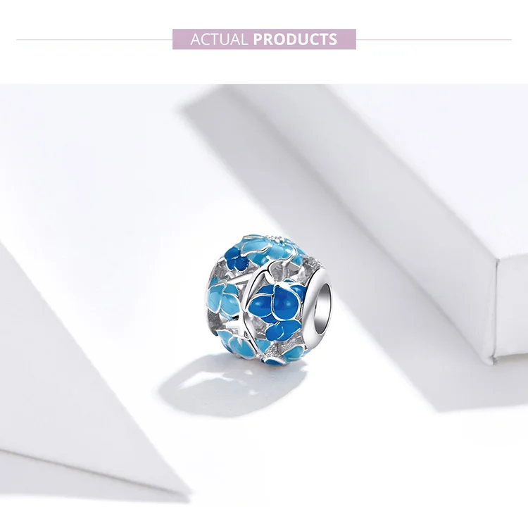 WOSTU синий цветок бусины 100% Серебро 925 пробы Шарм Подходит оригинальный браслет кулон серебро Сделай Сам Изготовление ювелирных изделий CTC087