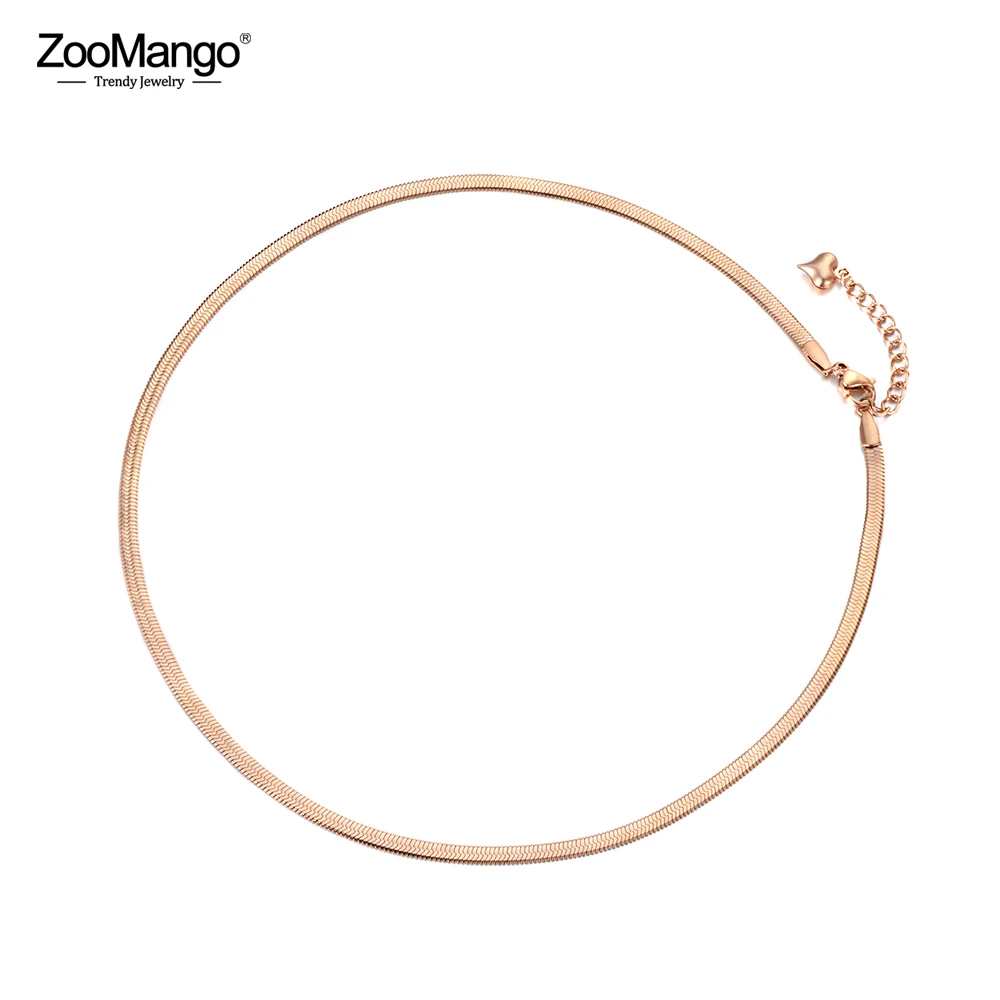 Женское Ожерелье из нержавеющей стали ZooMango, простая цепочка-змейка из титана под розовое золото, подарок на Рождество, ZN18065