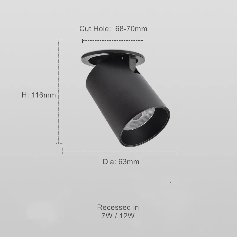 Светодиодный встраиваемый светильник COB с регулируемой яркостью 10...