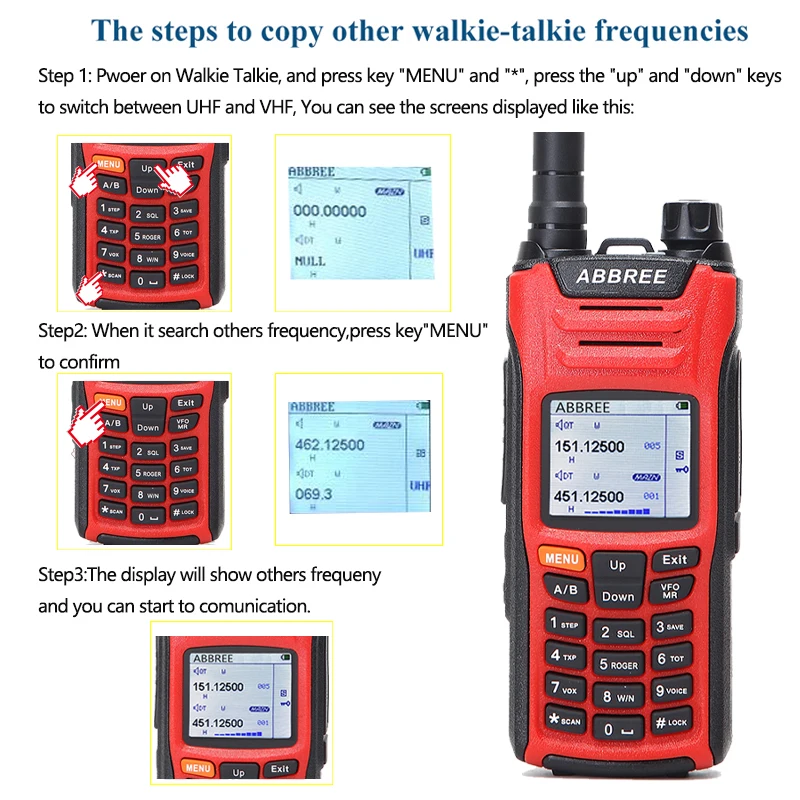ABBREE AR-F6 Беспроводная копировальная частота 123-520 МГц полнодиапазонная 999CH многофункциональная VOX DTMF SOS рация с цветным ЖК-дисплеем