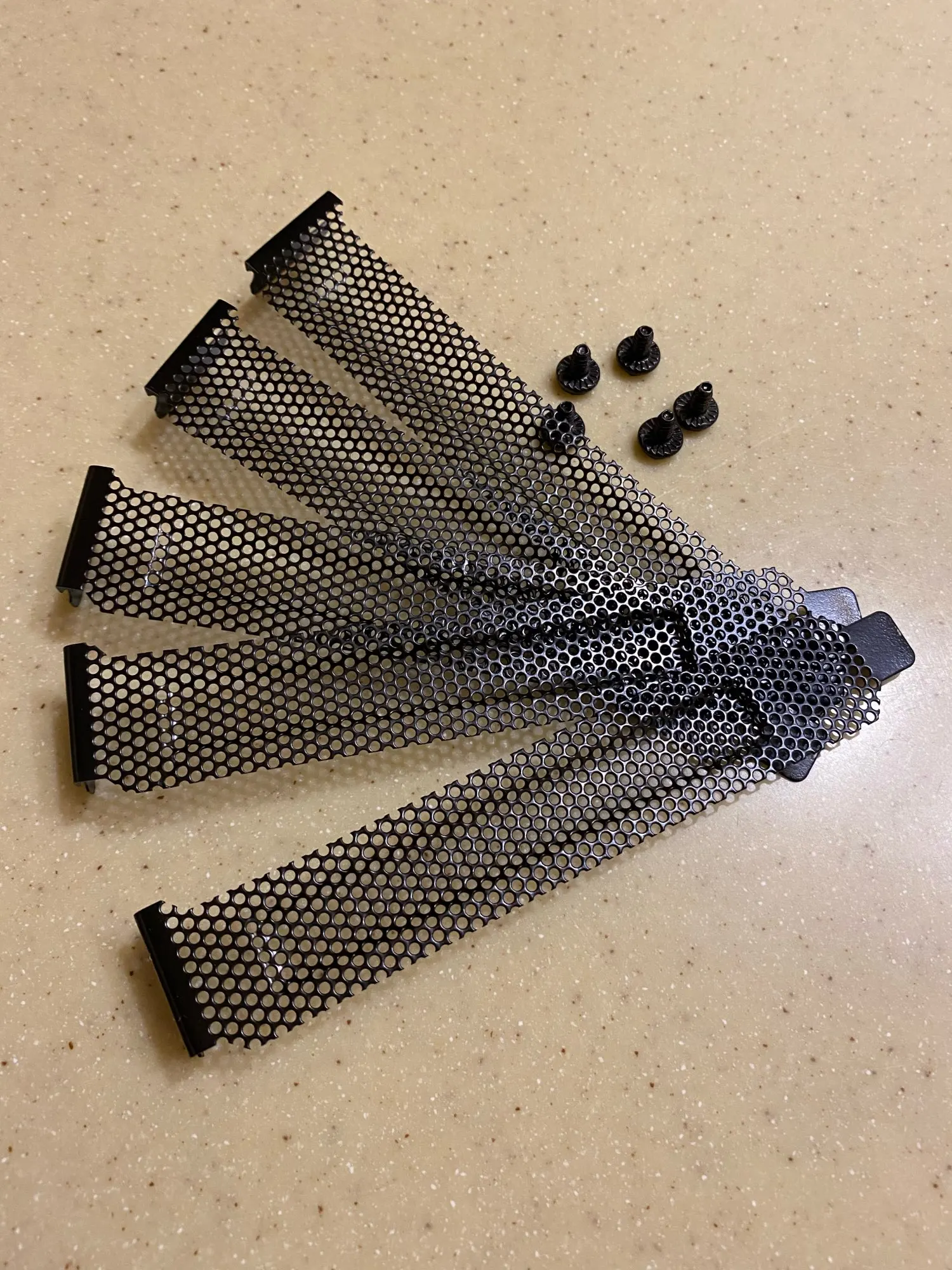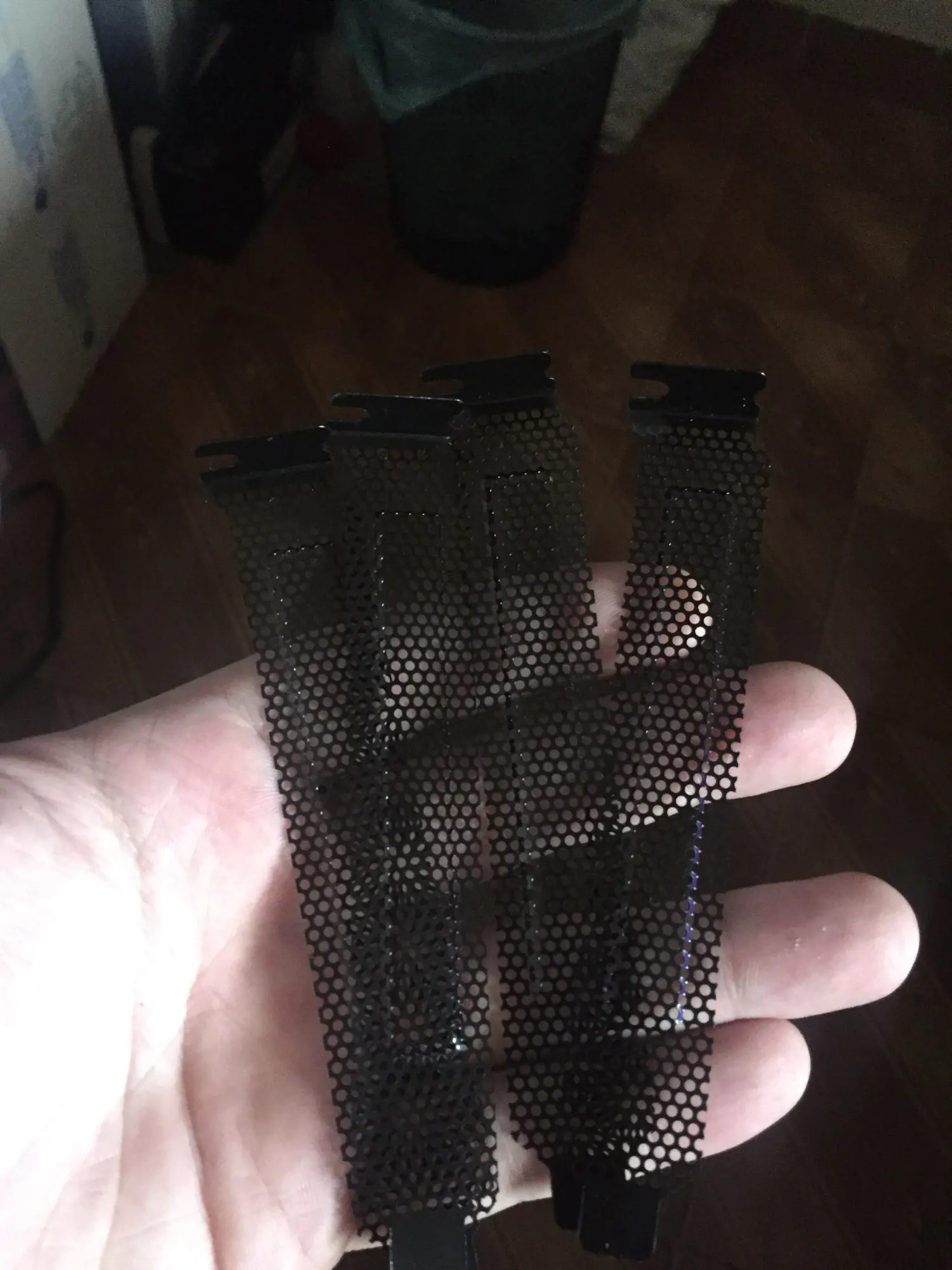 шло очень долго. сами планочки очень тоненькие на красивые. брал для доп охлаждения компонентов. вроде норм. по пыли не ясно но сильно задерживать не будут. сильно крупные дырки.