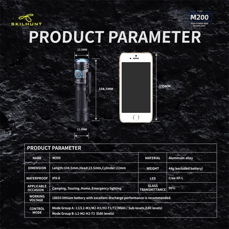 1. Супер яркий и latescree XPL светодиод, максимум 1100 люменов. Высокая производительность, высокая эффективность и энергосбережение.