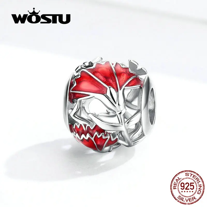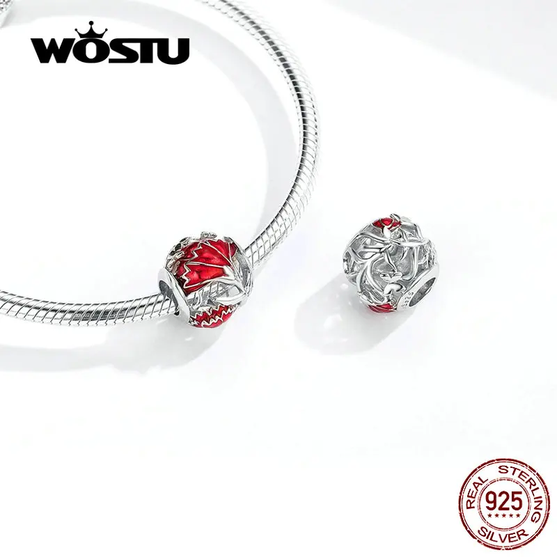 Женский браслет WOSTU, из стерлингового серебра 925 пробы с красным эмалированным цветком