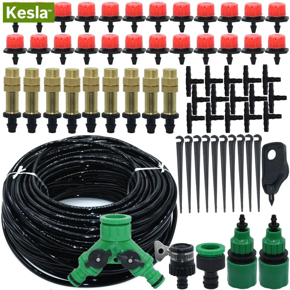 KESLA 5 м-30 м садовый капельный полив, ирригационная система, набор для полива с 1/4 "ПВХ шланг, запотевание, разбрызгиватель, тройник, адаптер