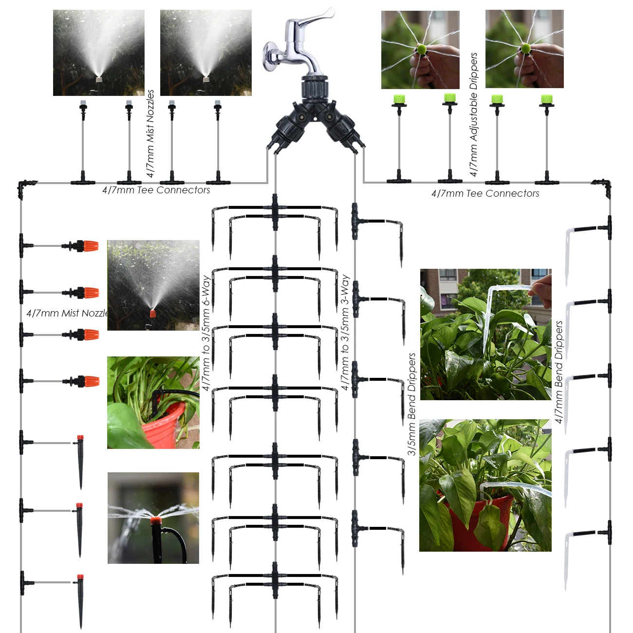 [Полная Настройка полива]Поток воды каждой головки капельного эмиттера может быть индивидуально отрегулирован, что позволяет настроить каждый рост, чтобы получить свой индивидуальный полив в соответствии с его точными потребностями. идеально подходит для палуб, патио, теплиц, садов, лужаек и т. д.