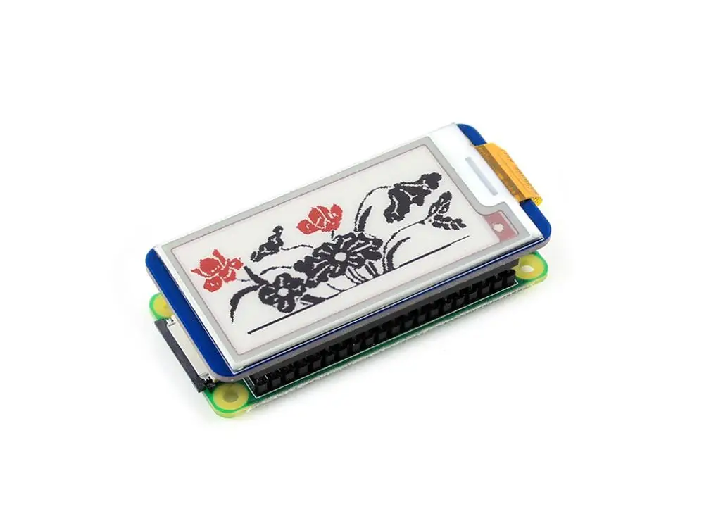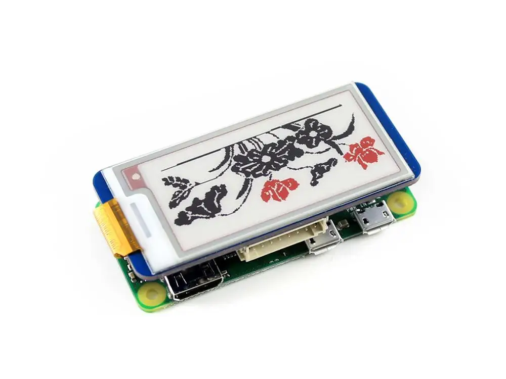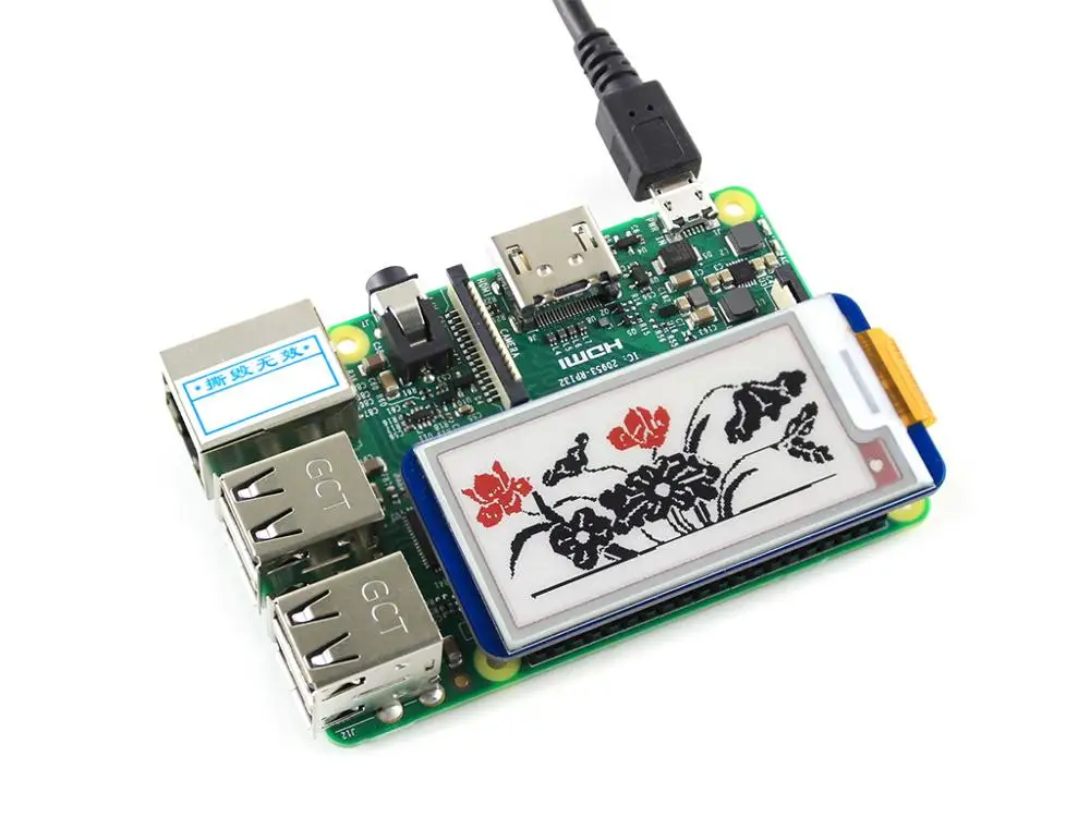 Это E-Ink display HAT для Raspberry Pi, 2,13 дюйма, с разрешением 212x104, со встроенным контроллером, общаясь через SPI интерфейс, поддерживает красный, черный, И белый трехцветный дисплей.