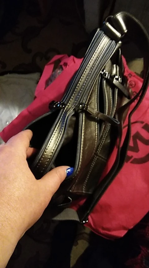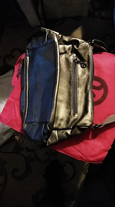 получила сумку,так быстро пришла,прямо вау,сумка большая,вместительная,даже не ожидала,конечно не кожа,иесть не большой брак,прошит боковой кармашек немного не правильно,но и это не испортило впечатление,короче,я очень рада,продавцу спасибо,заказывайте,советую,да,еще,запаха нет.