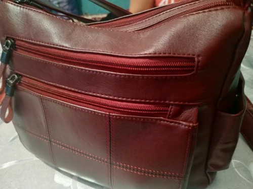 Сумкой довольна, рекомендую. Кожзам мягкий, приятный на ощупь, сшита качественно, почти ничем не пахнет, подклад плотный, карманов предостаточно, а главное размер идеальный - не большая, но и не маленькая, вместительная. В общем супер, то что искала