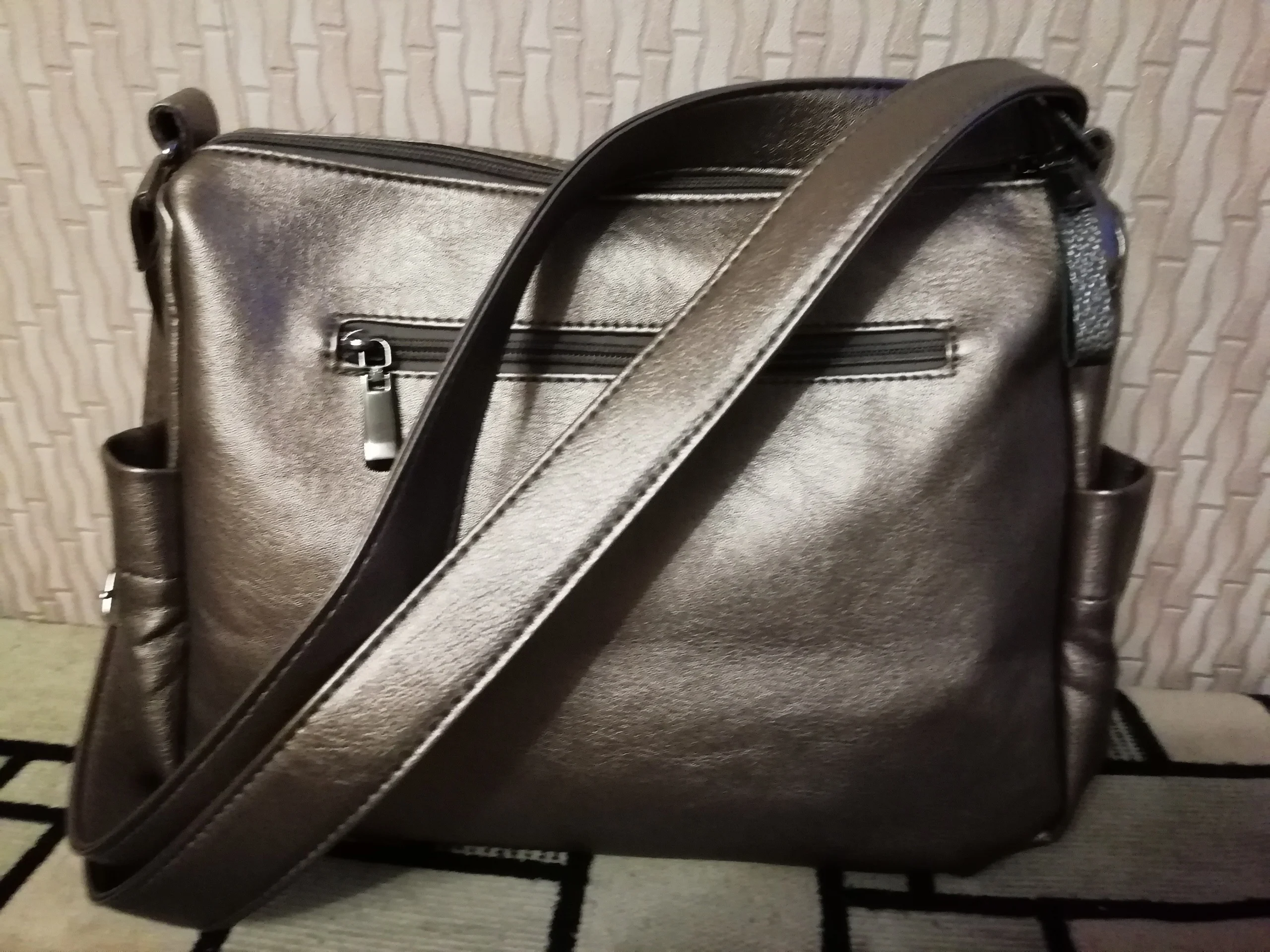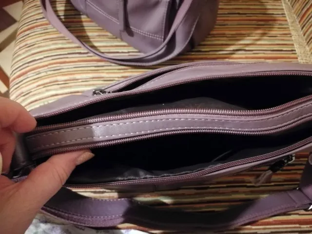 Сумка отличная! Функциональные карманы, замки все рабочие, кнопки по бокам тоже. Цвет интересный, меняется в зависимости от освещения, прямо хамелеон))). Единственное чего не хватает, это металлических ножек на дне Сумки, без них низ быстро затрется. Я довольна покупкой, рекомендую! Тем более за такую цену 1097₽.