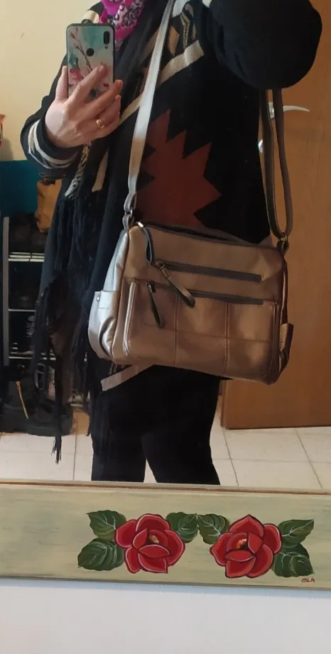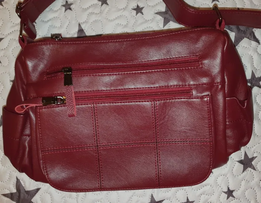 Очень красивая вместительная сумка из очень мягкой искусственной кожи. Достаточно карманов, чтобы все было хорошо на горах. Рекомендуется! В течение 3 недель!