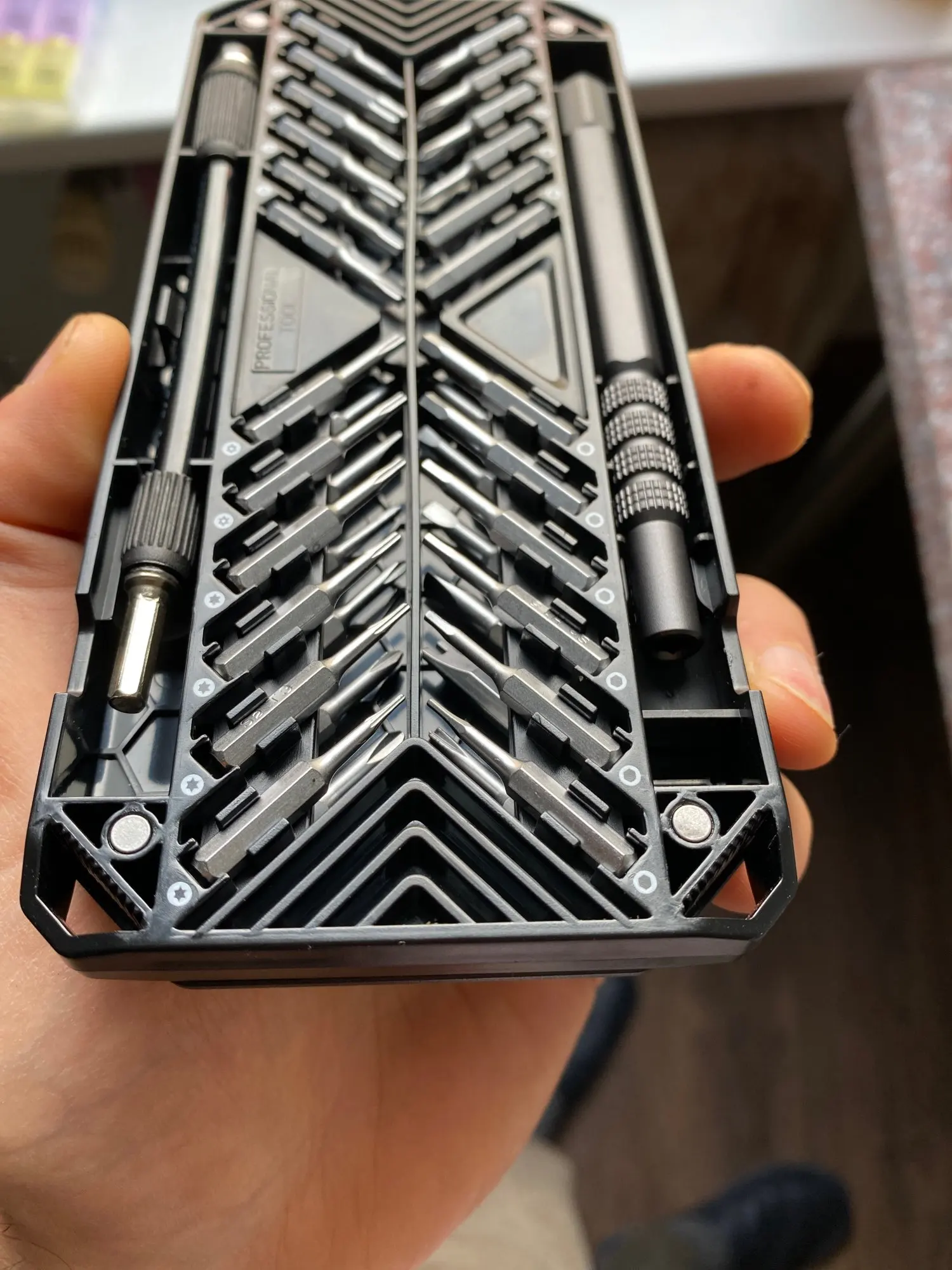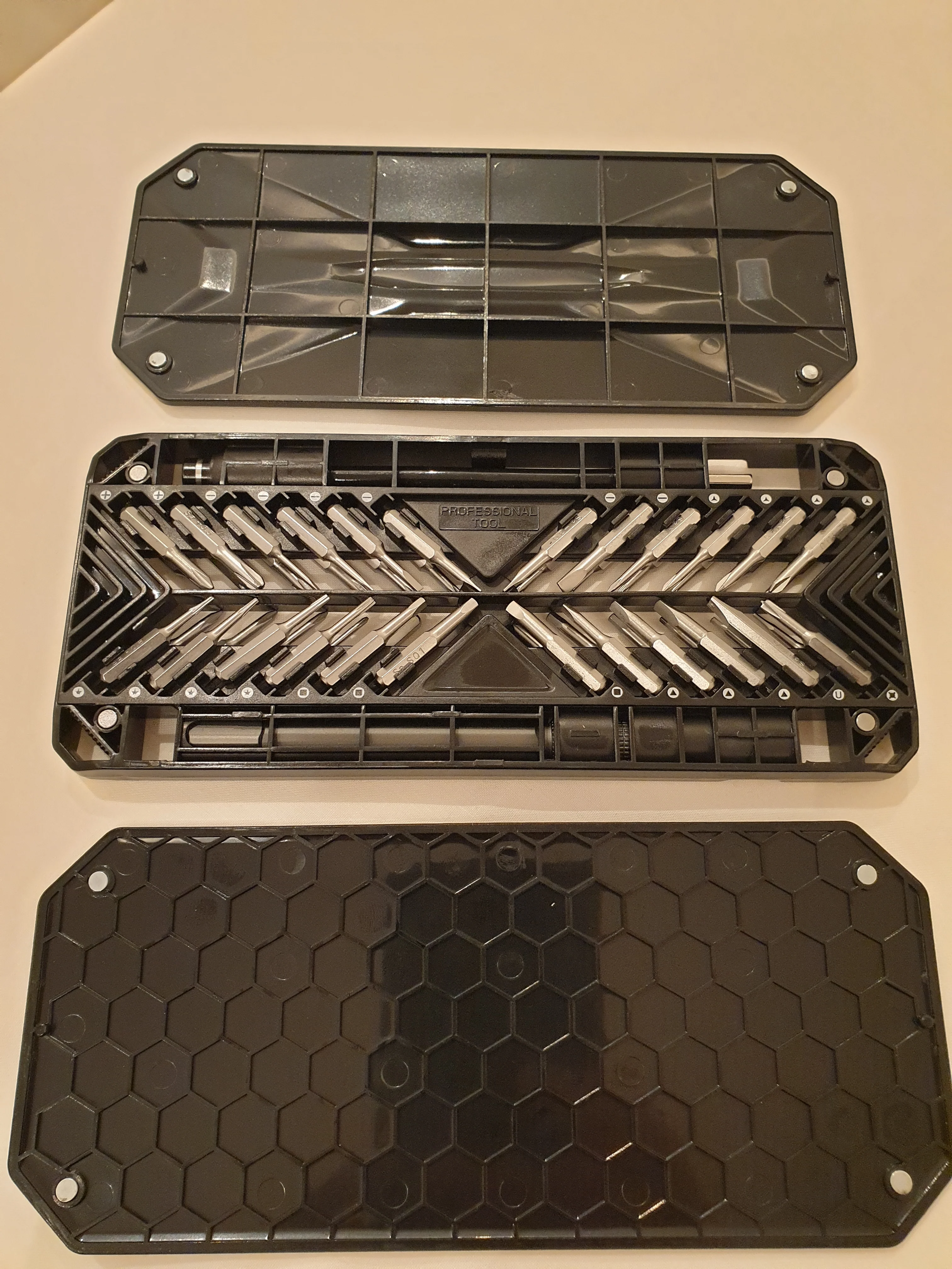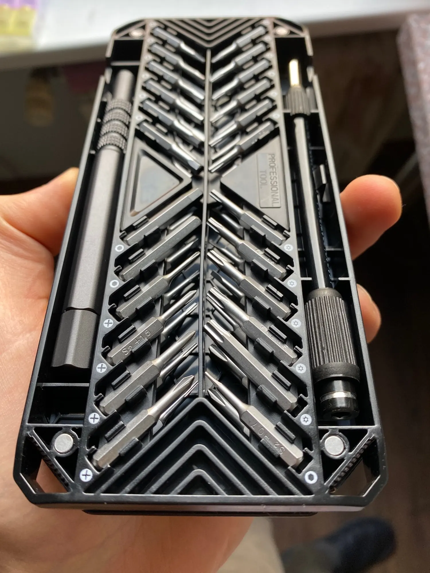 Не нравится, как биты держатся на месте. Мне сложно быстро его вынуть. В целом комплект хороший. Хорошее соотношение цены и качества. Хорошее обслуживание. Несмотря на то, что мне нравится мой Набор отверток xiaomi, у этого более милое внимание к деталям.