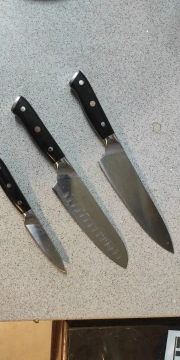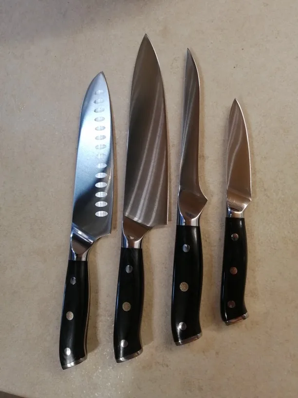 Довольно хороший нож! Хороший баланс, достойная работа и качество кажется довольно хорошим. Выглядит и ощущается так же, как вы ожидали. Это не премиум-товар, но за 1/10 стоимости, что, безусловно, нормально. На самом деле, этот точный нож, вероятно, является твердым под другим брендом в вашем местном магазине кухонных принадлежностей прямо сейчас-по гораздо более высокой цене.