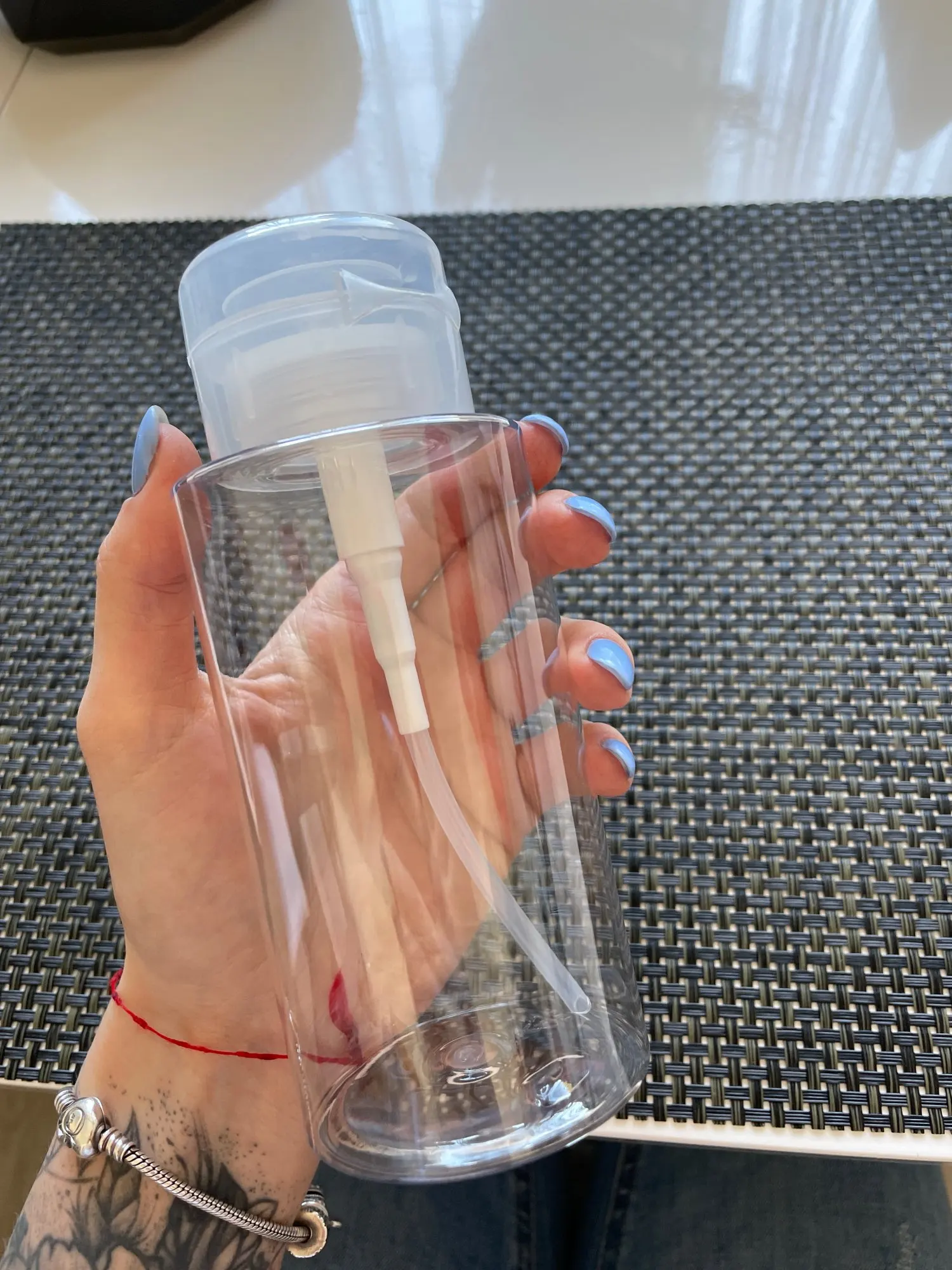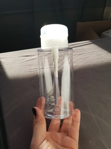 Баночка хорошая, плотный пластик, не гнётся . Брала для средства для снятия макияжа, если средство двухкомпонентное с маслом, то приходится взбалтывать бутылочку и немного капель вылетает если пальцем не придерживать отверстые. К продавцу и товару претензий нет
