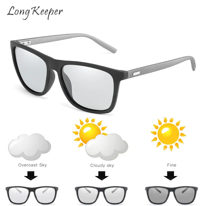 Солнечные очки Long Keeper с фотохромными линзами UV400 для мужчин и женщин, поляризационные солнцезащитные аксессуары в квадратной оправе из поликарбоната