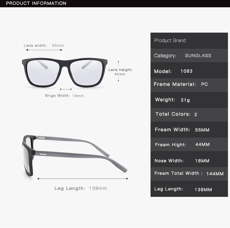 Product FunctionUV400 Protection Against Harmful UVA/UVB