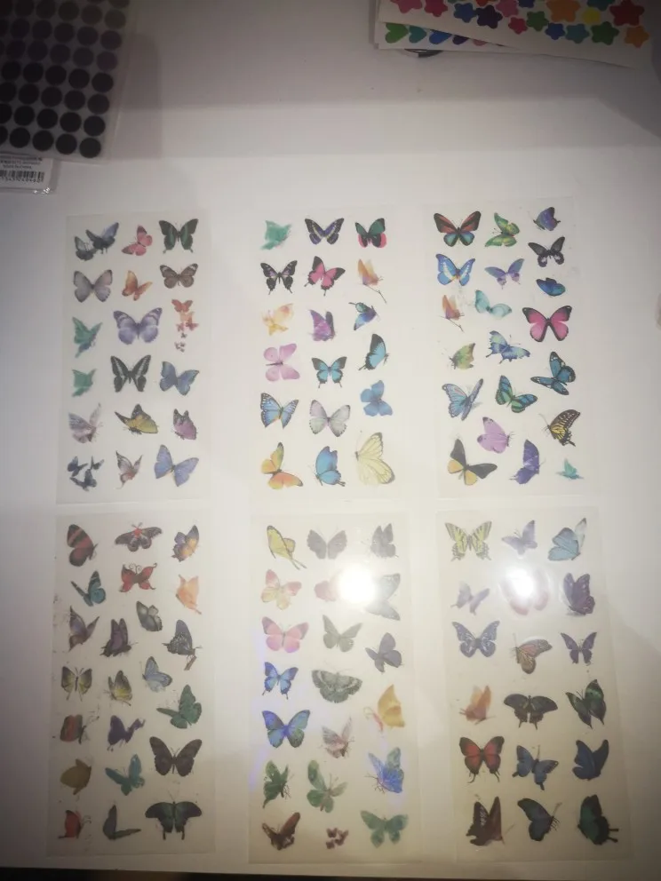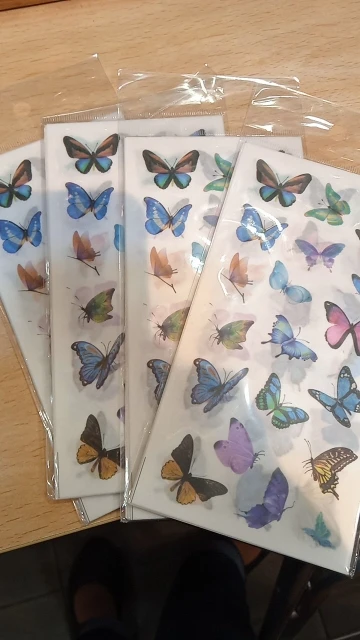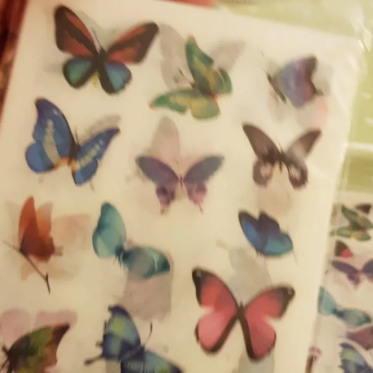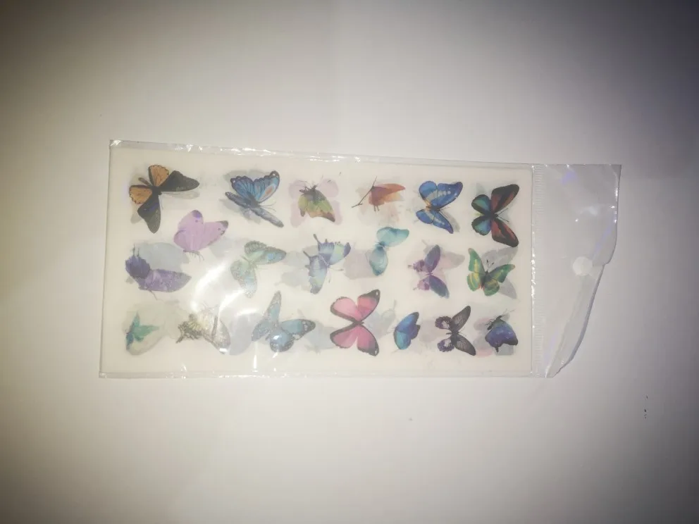 Наклейки с бабочками и стикерами размером в дюймах или ниже. Сначала я думал, что придется разрезать их, но нет, они действительно отделяются от подложки. Просто остро сгибайте заднюю часть листа рядом с бабочкой на выбор и отклейте. Продавец отправляется в кратчайшие сроки в течение 3 недель.