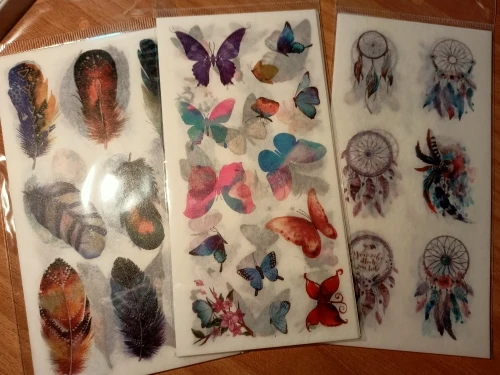 Полная хрень. Наклейки очень бледные, невзрачные, на обычной белой бумаге. Куда их наклеивать, если они на непрозрачном фоне и этот фон как бельмо на глазу. Не рекомендую. Посылка шла очень долго, наверное пешком добирались.