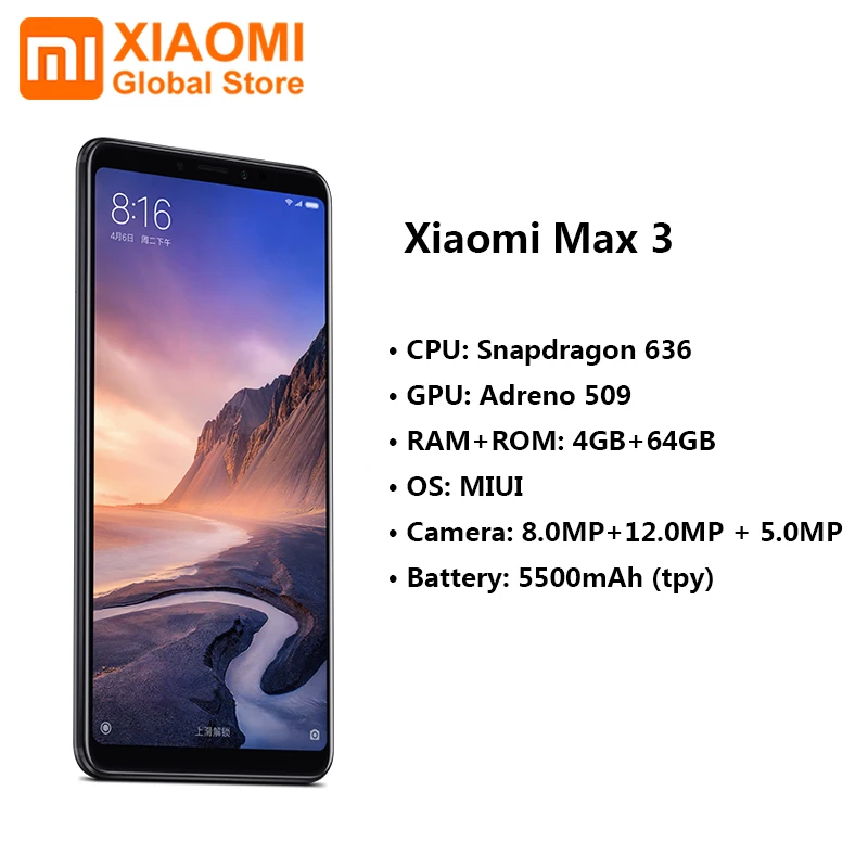 Модель XiaomiMi Max 3 4 ГБ 64 ГБ