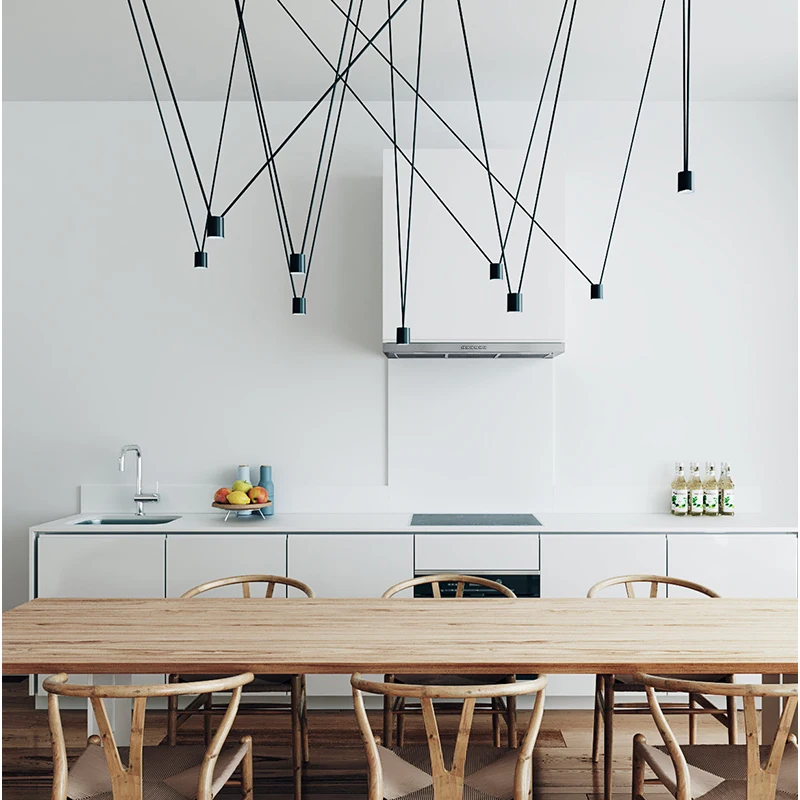 Уникальный дизайн спички линии светодиодные подвесные светильники геометрические DIY Haning провода ламп люстры для гостиной промышленный паук лампа