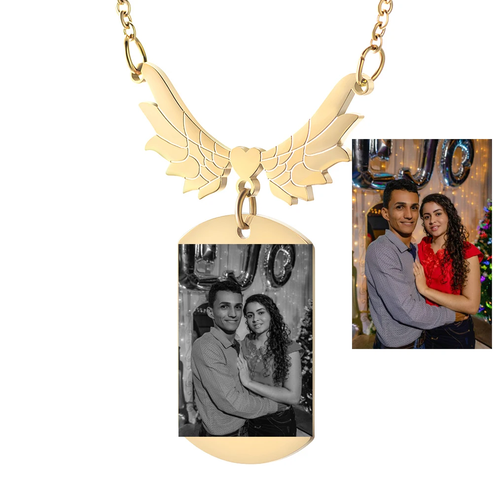 Индивидуальное ожерелье с фото текстом, чокер, Крыло ангела, подвеска из нержавеющей стали, персонализированная Подвеска для семьи, влюбленных, подарки на день Святого Валентина